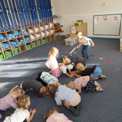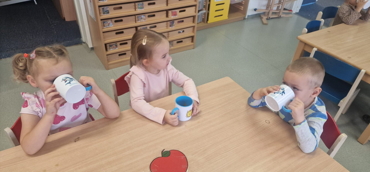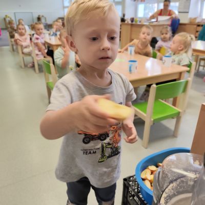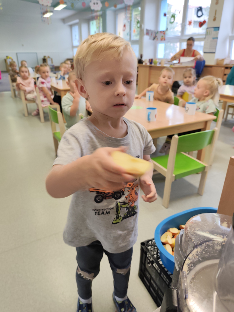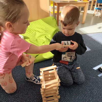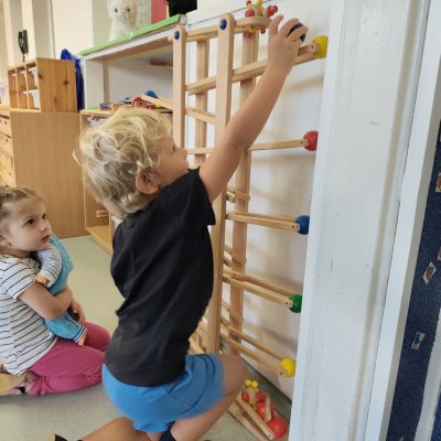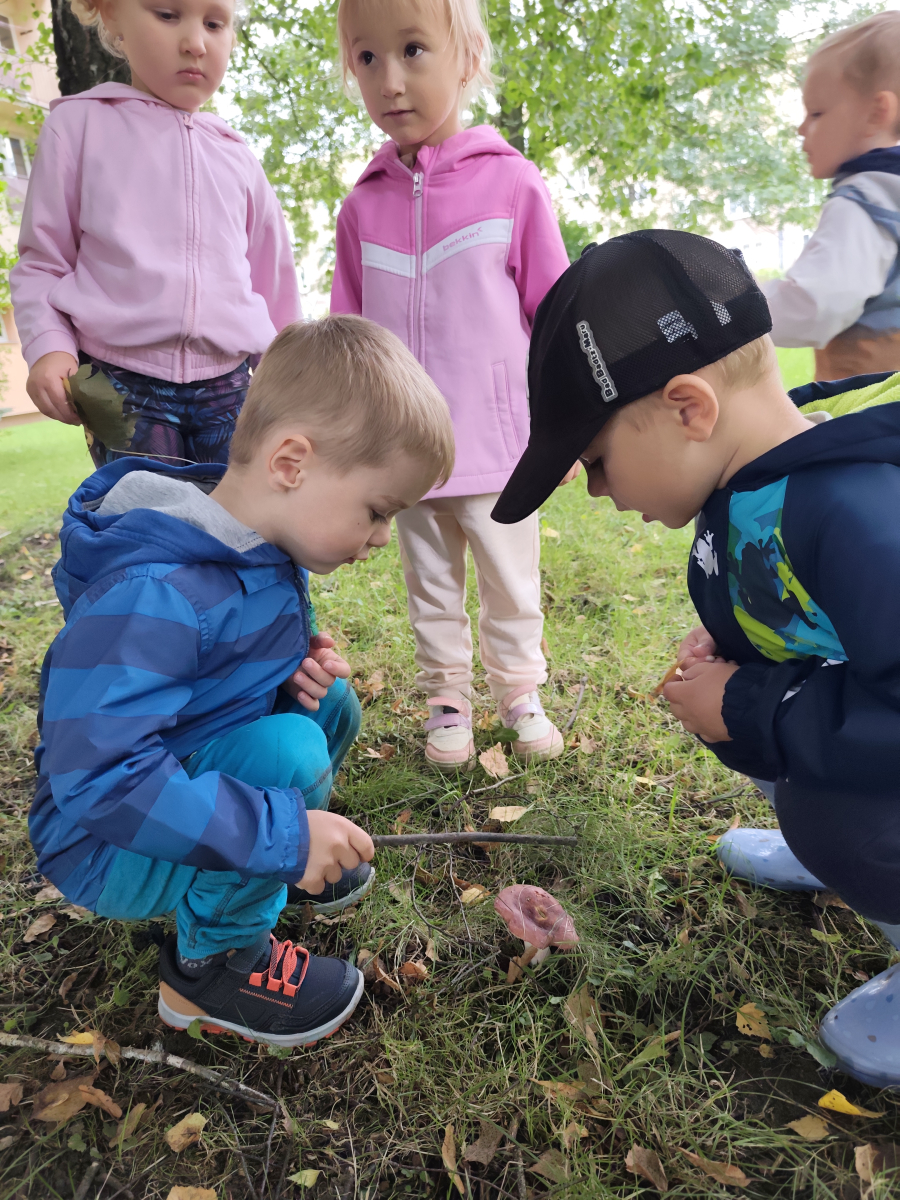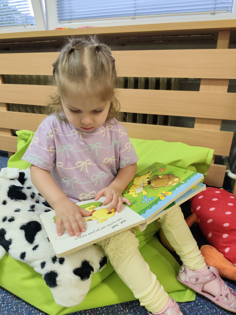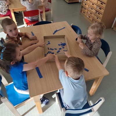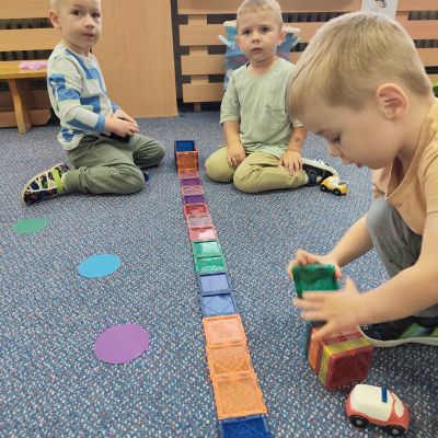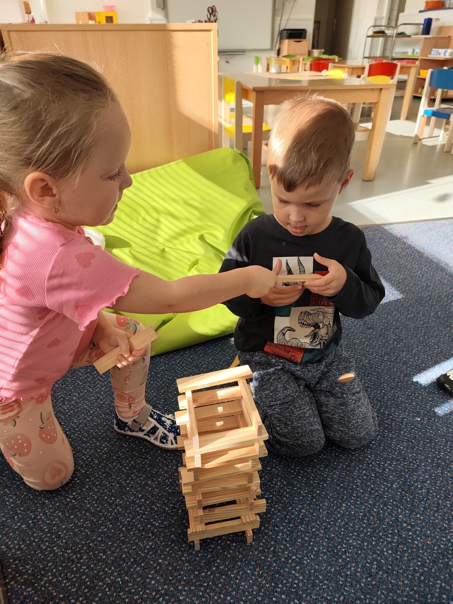 S dětmi jsem se i nadále sbližovali s prostředím školky a seznamovali se s pravidly, které nám pomáhají s tím, jak se chovat ve školce. Jedním z pravidel o kterém jsme si povídali bylo třeba "Hračkové" ke kterému, jsem se naučili i písničku. Ke "Kapičkovému" pravidlu jsme si zase natrhali barevný papír k tvoření společné práce (Kapka). Výtvarně se děti ještě vyřadili malbou srdíčka a obtiskem listů, který jsme šli společně hledat během pobytu venku. Děti si také naučili novo hru, obušku z pytle ven, kterou si hned oblíbily. K procvičení prstíku, jsme využívali různé hry a aktivity jako např. vytváření obrázků nebo hledání cesty v bludišti s pomocí PET víček, ale také přiřazování kolíčků a navlékání korálků během smyslohraní. Novým zážitkem bylo pro některé děti odšťavňování a následné ochutnávání.
