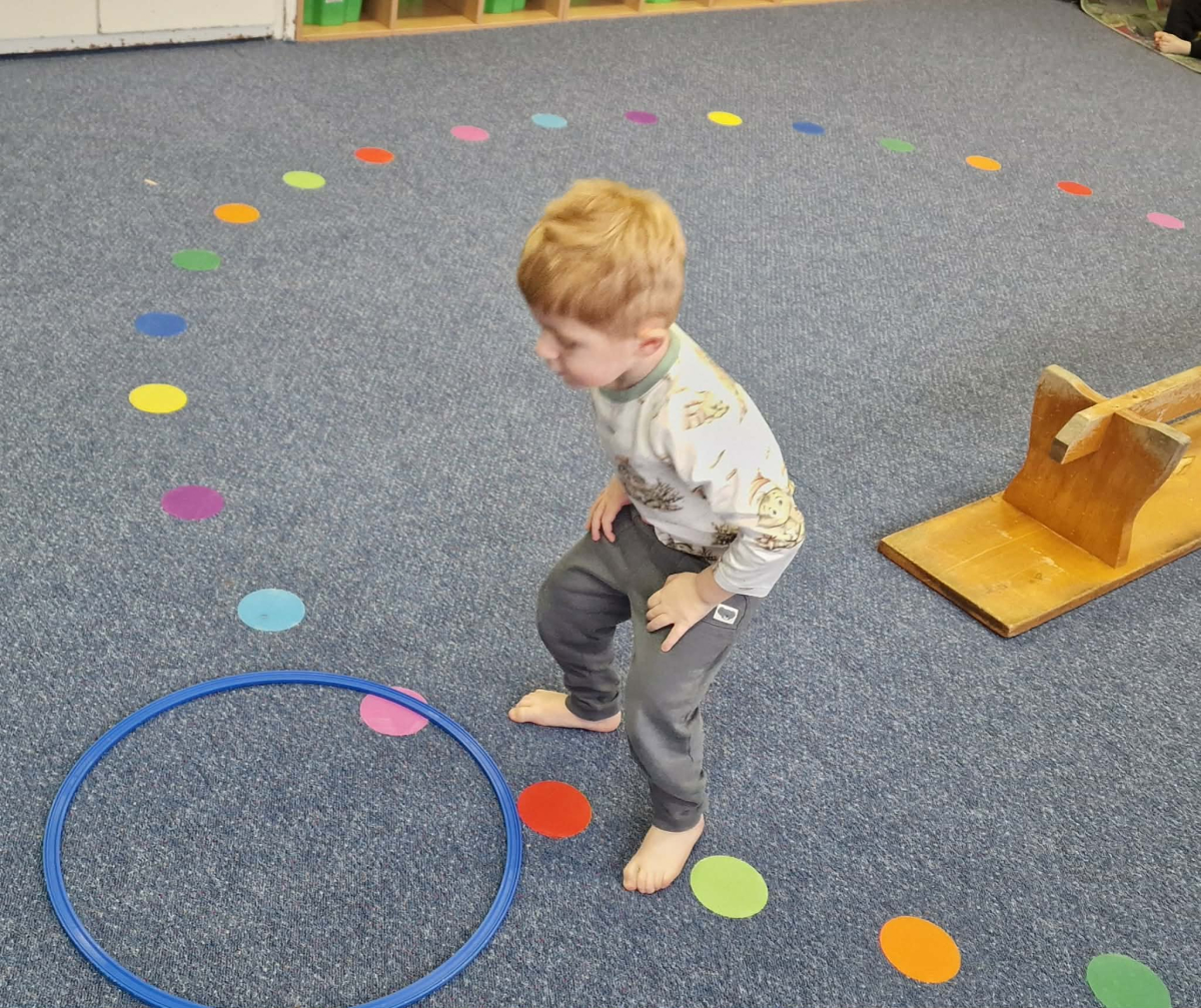 Vyzkoušeli jsme si, jak akrobati chodí na vyvíšené ploše, a naučili jsme se novou hru na "Cirkus".