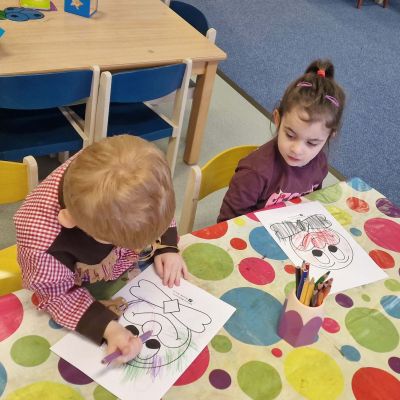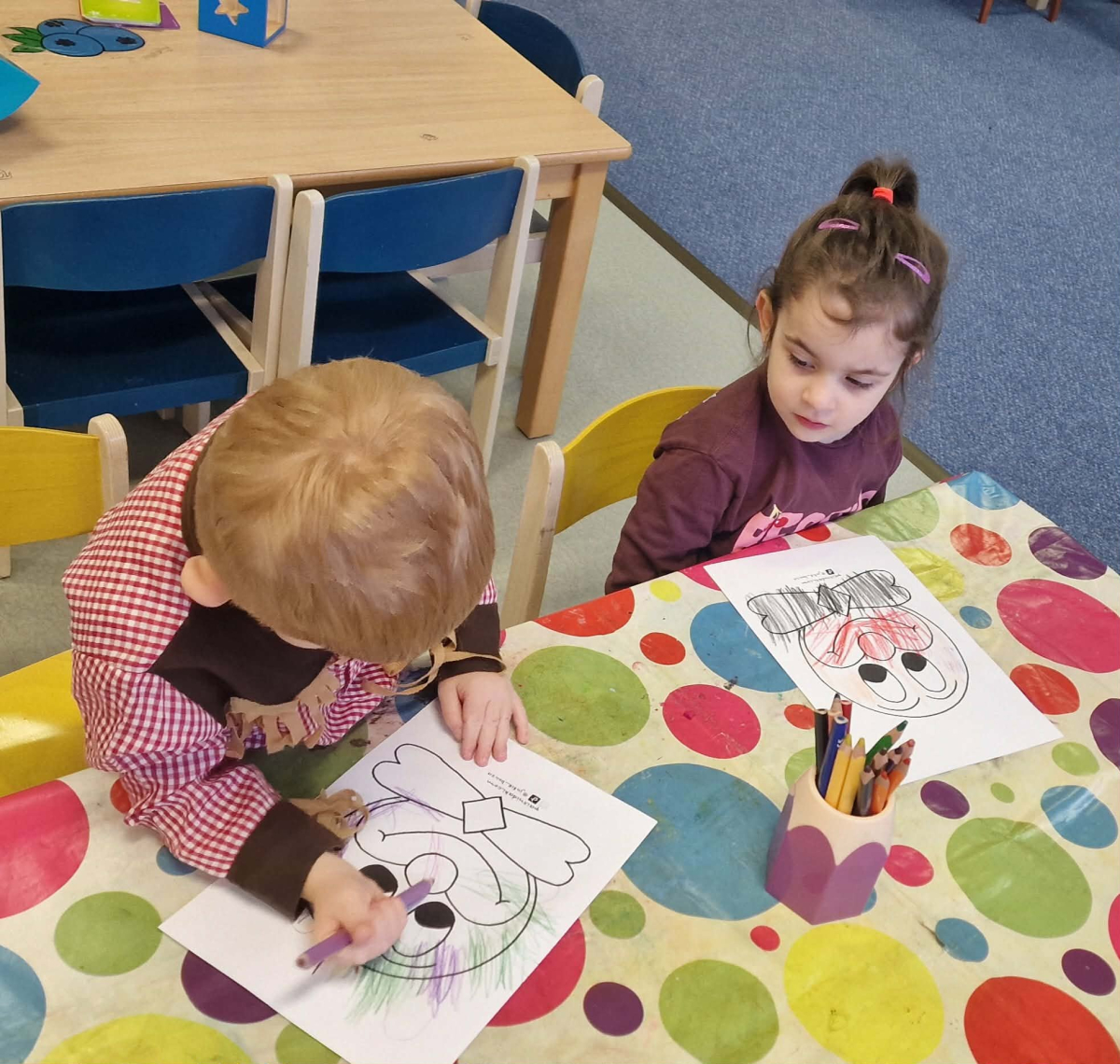Procvičili jsme si dech při malování vlasů klauna a někteří z nás si vyrobili klaunovské čepičky a kravaty.