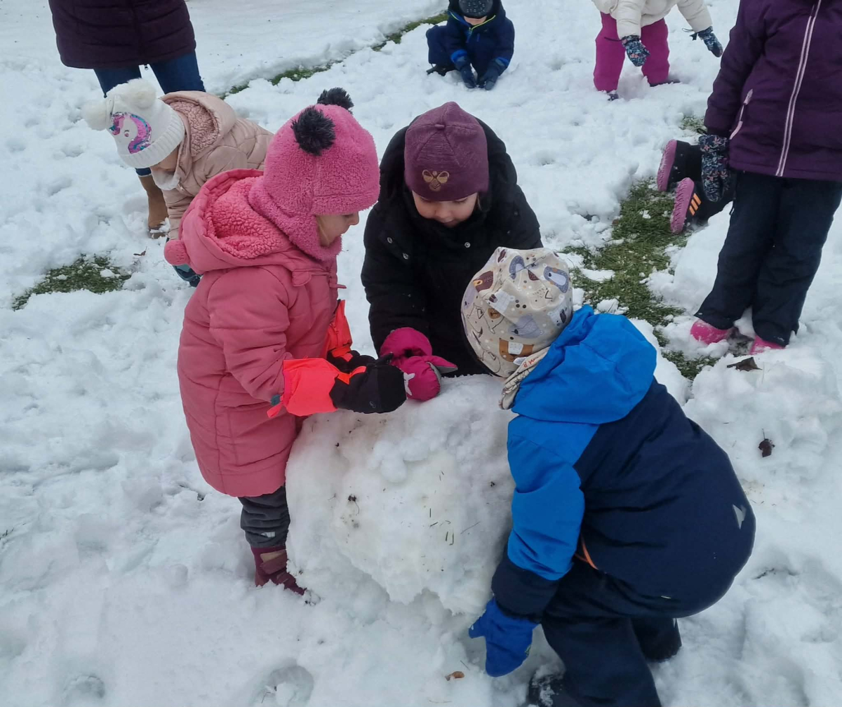 Venku nám napadla spousta sněhu, tak jsme si ho dosyta užili - hráli jsme na koulovanou, tvořili jsme andělíčky, klouzali jsme se na ledu, chodili ve stopách a postavili jsme i sněhuláka.