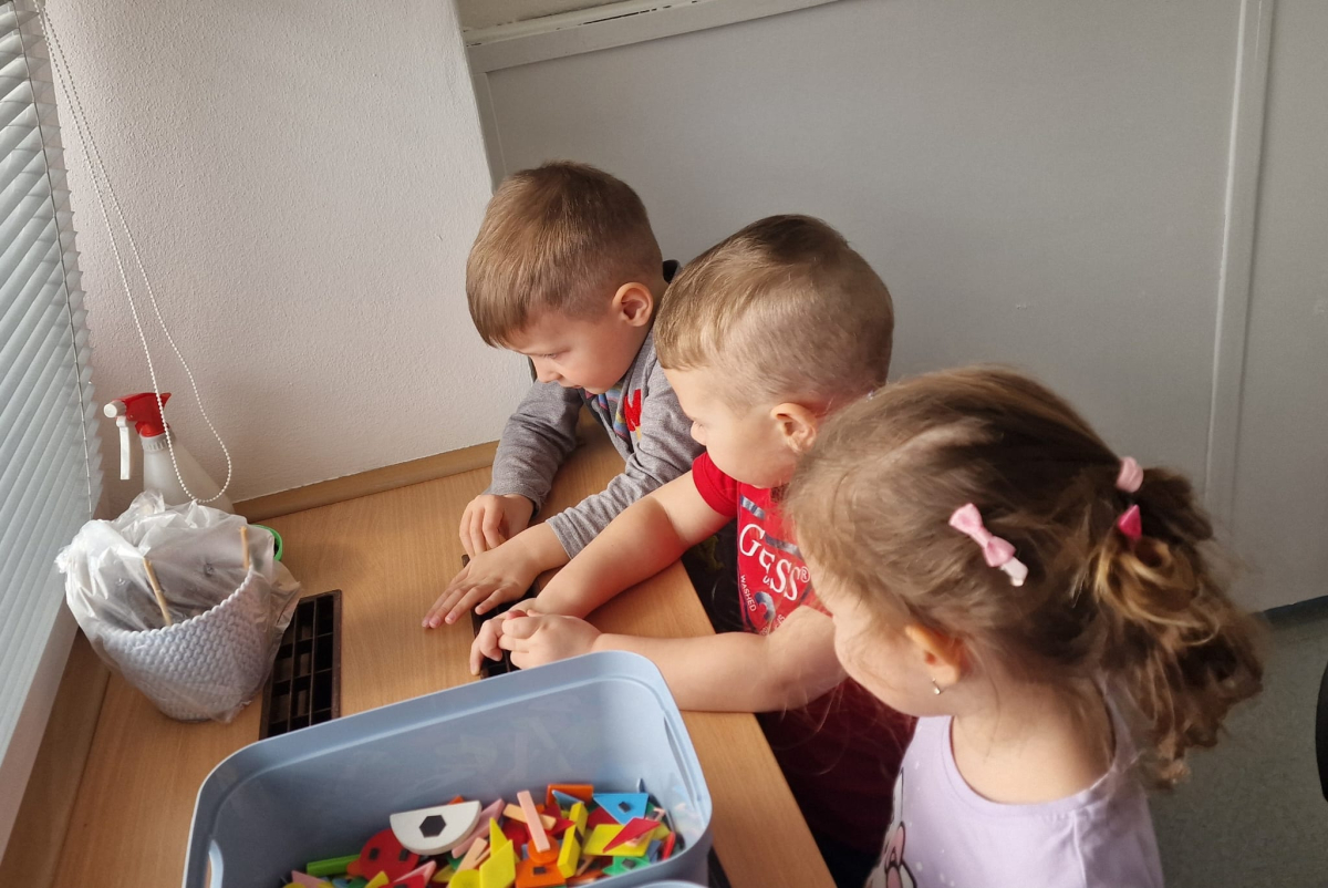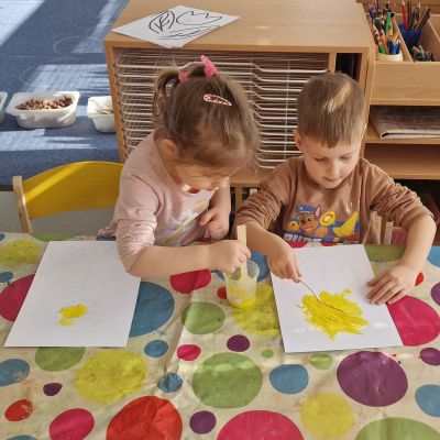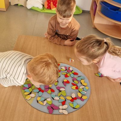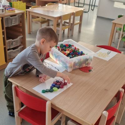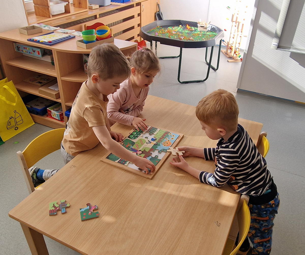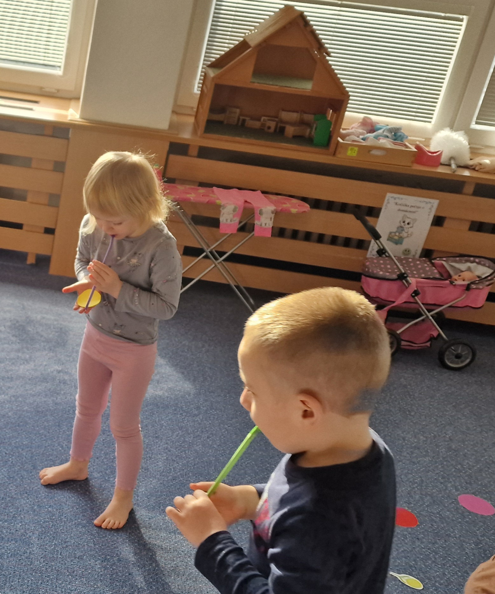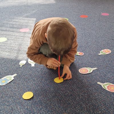 Při různých činnostech děti skládaly květiny z drobných prvků, pracovaly s puzzle, třídily předměty podle barev a rozvíjely tak jemnou motoriku, zrakové vnímání i logické myšlení. Ve výtvarných aktivitách tvořily jarní květiny různými technikami – malbou, lepením i otiskem dlaně.