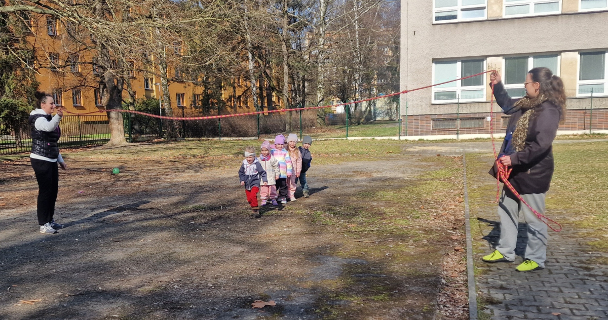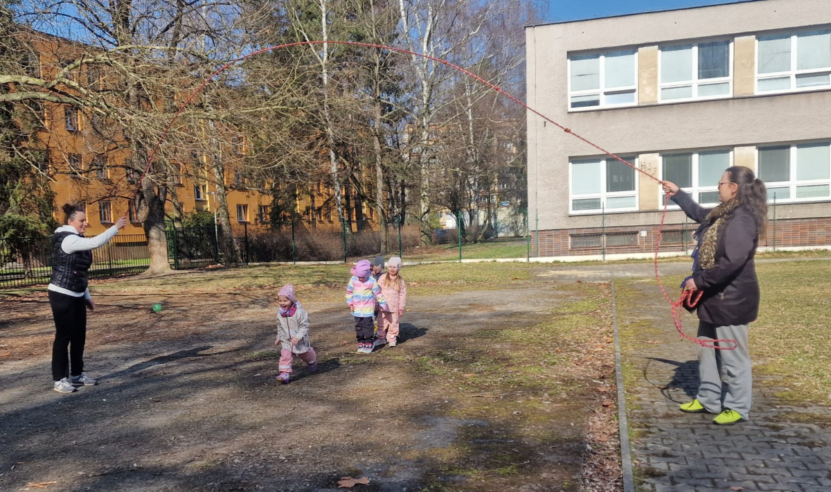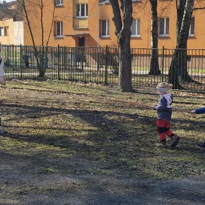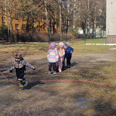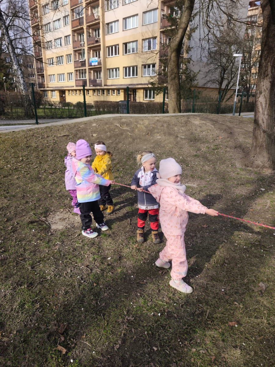 Při pobytu venku jsme hledali první známky jara v přírodě, pozorovali květiny, pupeny i ptáčky a užili si volné hry na hřišti. ????