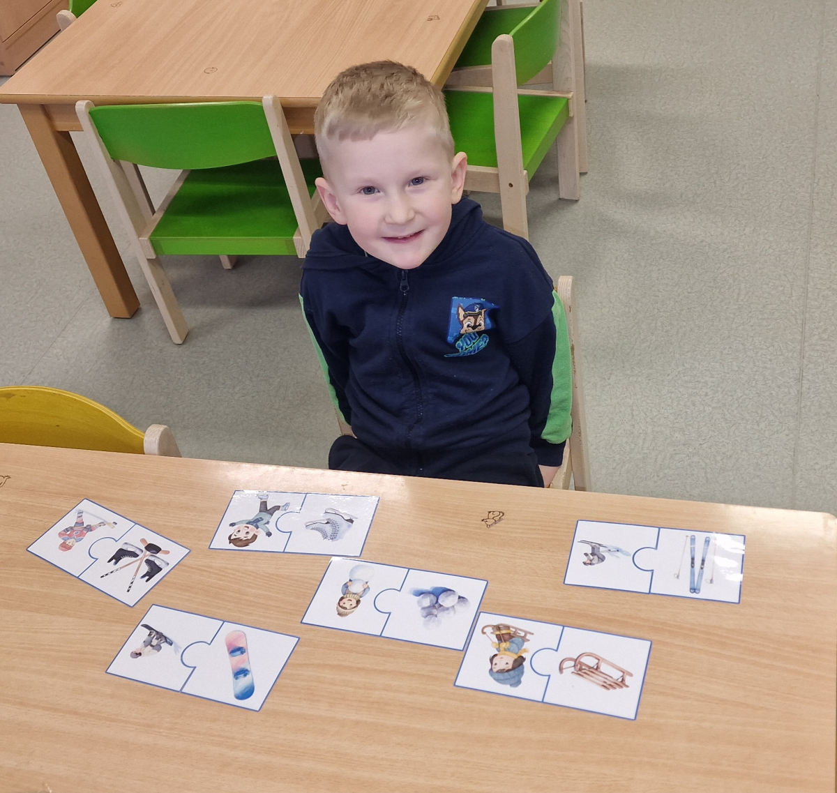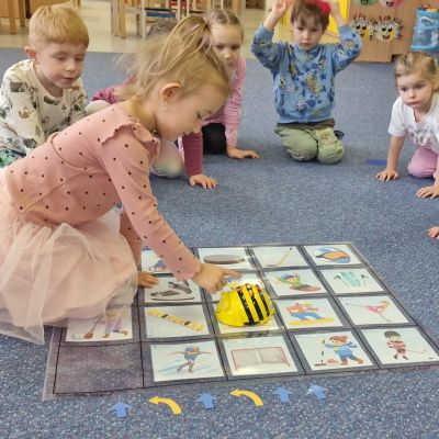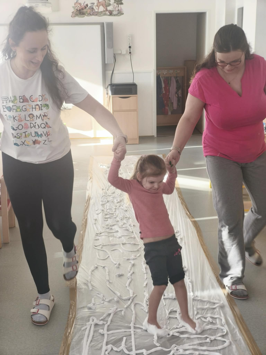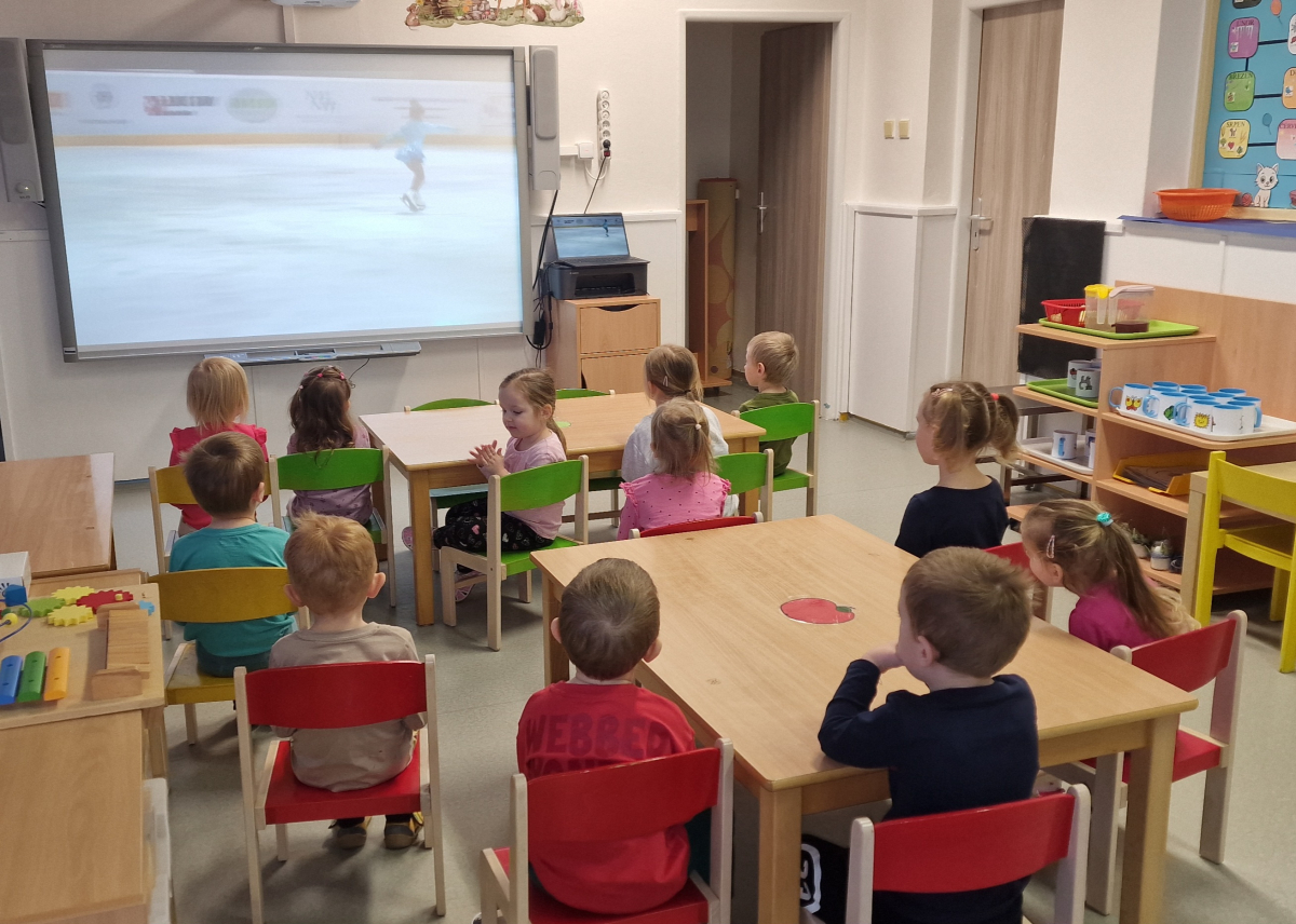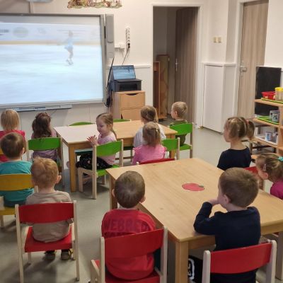 Tento týden jsme si opakovali, co už víme o zimních sportech. Naučili jsme se písničku o splašené lyži a poté jsme si ji i vyrobili. Tentokrát jsme použili k technice tupování alobal. Vyzkoušeli jsme si jak se bruslí bez ledu a to pomocí pěny na holení a fólie. Byla to velká zábava. Nakonec jsme se naučili ovládat robotickou včelu podle šipek, díky které jsme si zopakovali, jak se jmenují různé zimní sporty a náčiní, které k nim potřebujeme.