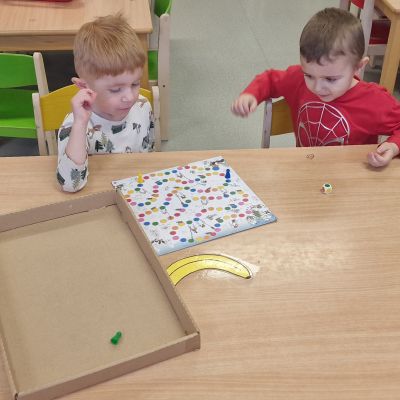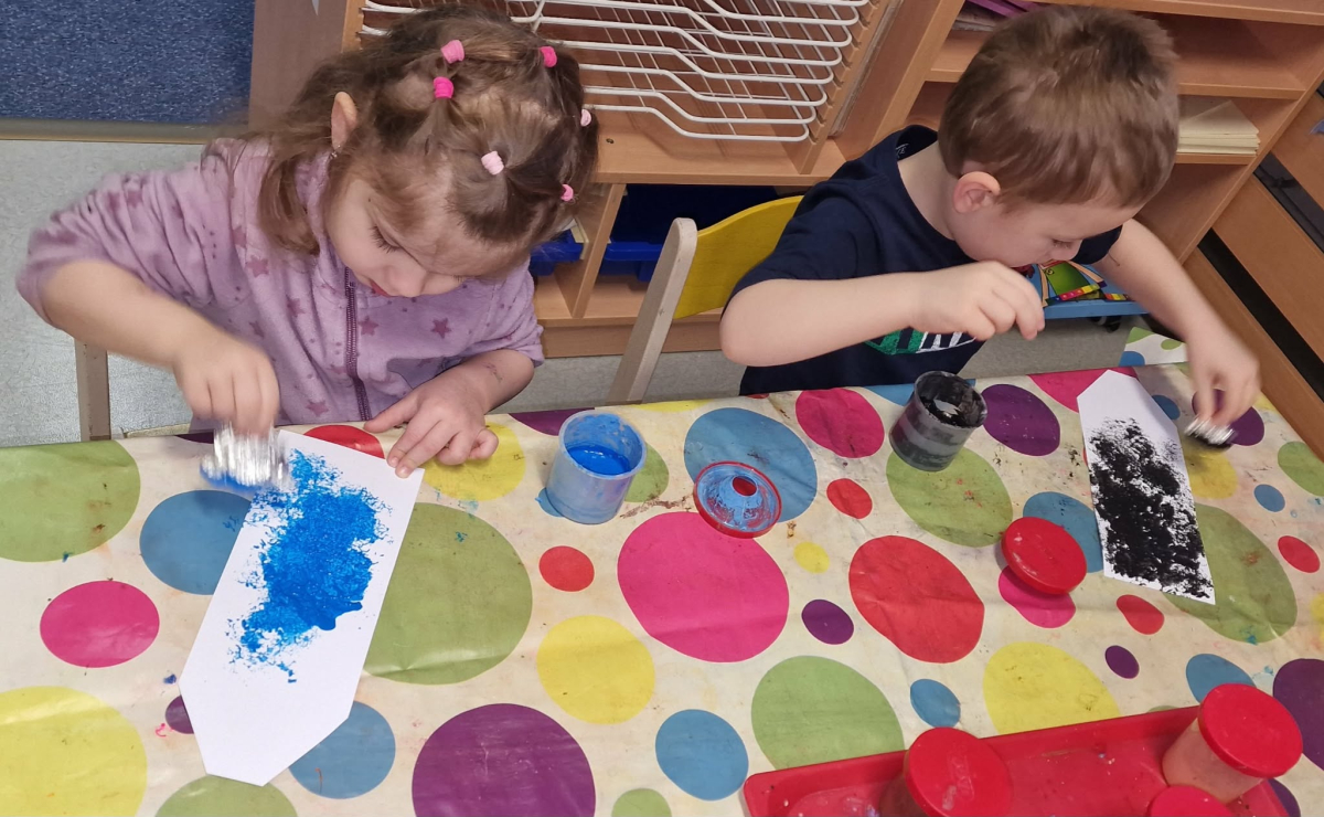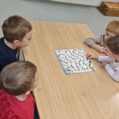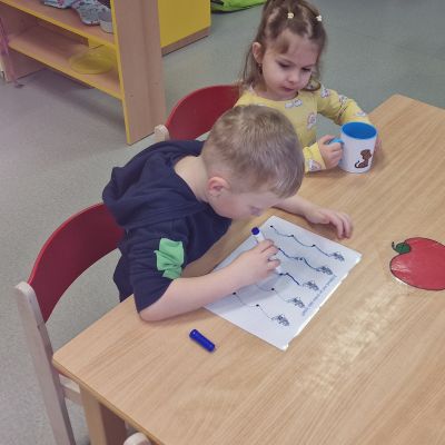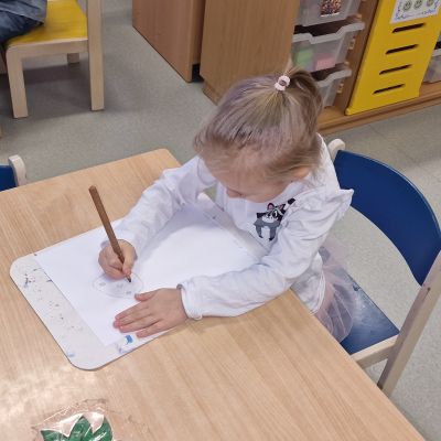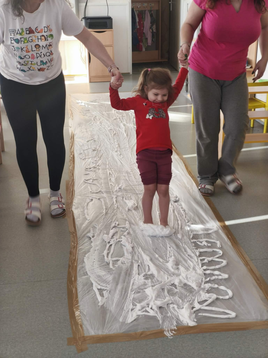 Tento týden jsme si opakovali, co už víme o zimních sportech. Naučili jsme se písničku o splašené lyži a poté jsme si ji i vyrobili. Tentokrát jsme použili k technice tupování alobal. Vyzkoušeli jsme si jak se bruslí bez ledu a to pomocí pěny na holení a fólie. Byla to velká zábava. Nakonec jsme se naučili ovládat robotickou včelu podle šipek, díky které jsme si zopakovali, jak se jmenují různé zimní sporty a náčiní, které k nim potřebujeme.