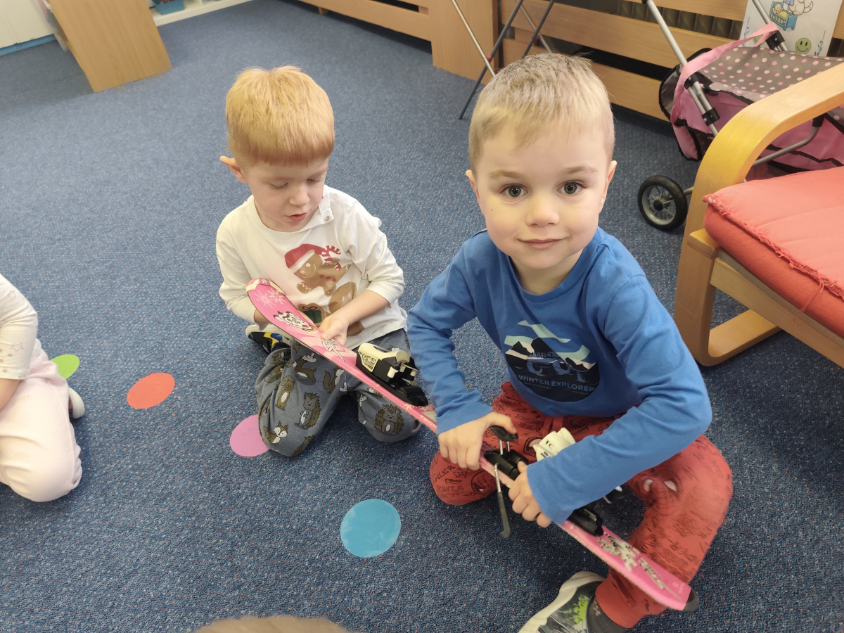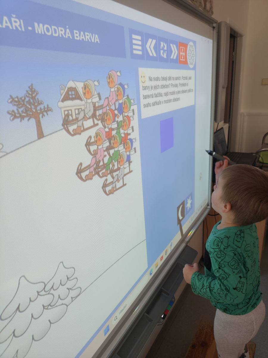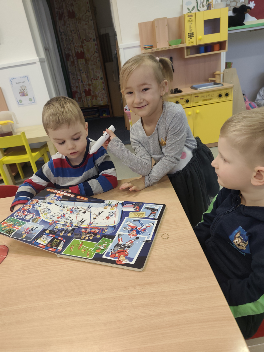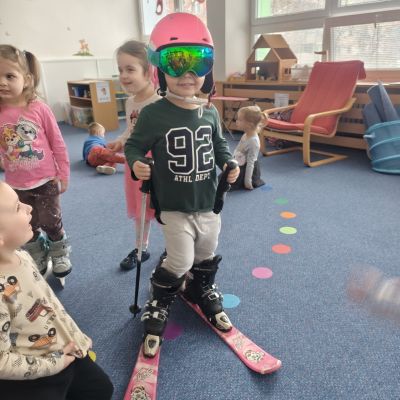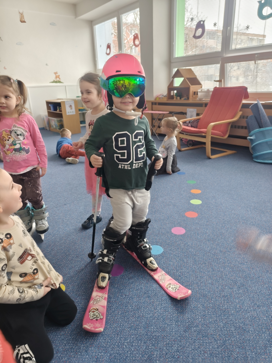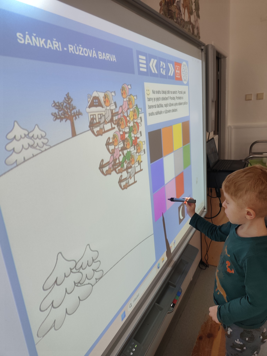 I do třídy Delfinků, zavítala sportovní a olympijská atmosféra. A aby jsme si o těch sportech jen nopvidali, tak jsme si je i vyzkoušeli a to když jsme si zahráli třeba "hokej" nebo sjížděli venku na zahradě kopec. Stal se z nás např. lyžař, logo který zdolaval můstek, přeskakoval boule sněhu, jel slalom ale také se válel po zemi. Děti si "osahaly" a vyzkoušely lyže + vybavení, nebo lední brusle. Vyrobily si hokejku s pukem a bruslře/ku na ledu, objevily sílu a kouzlo magnetu, rozpohybováním postaviček na "sněhu" a plnily zimní sportovní aktivity, jak u stolečku tak na interaktivní tabuli.