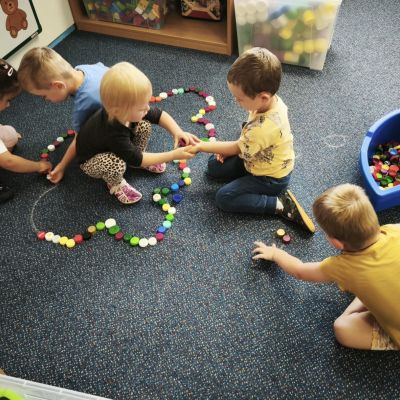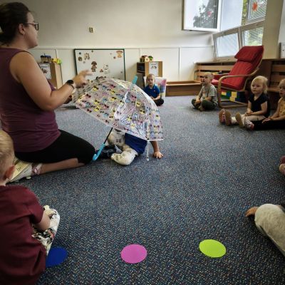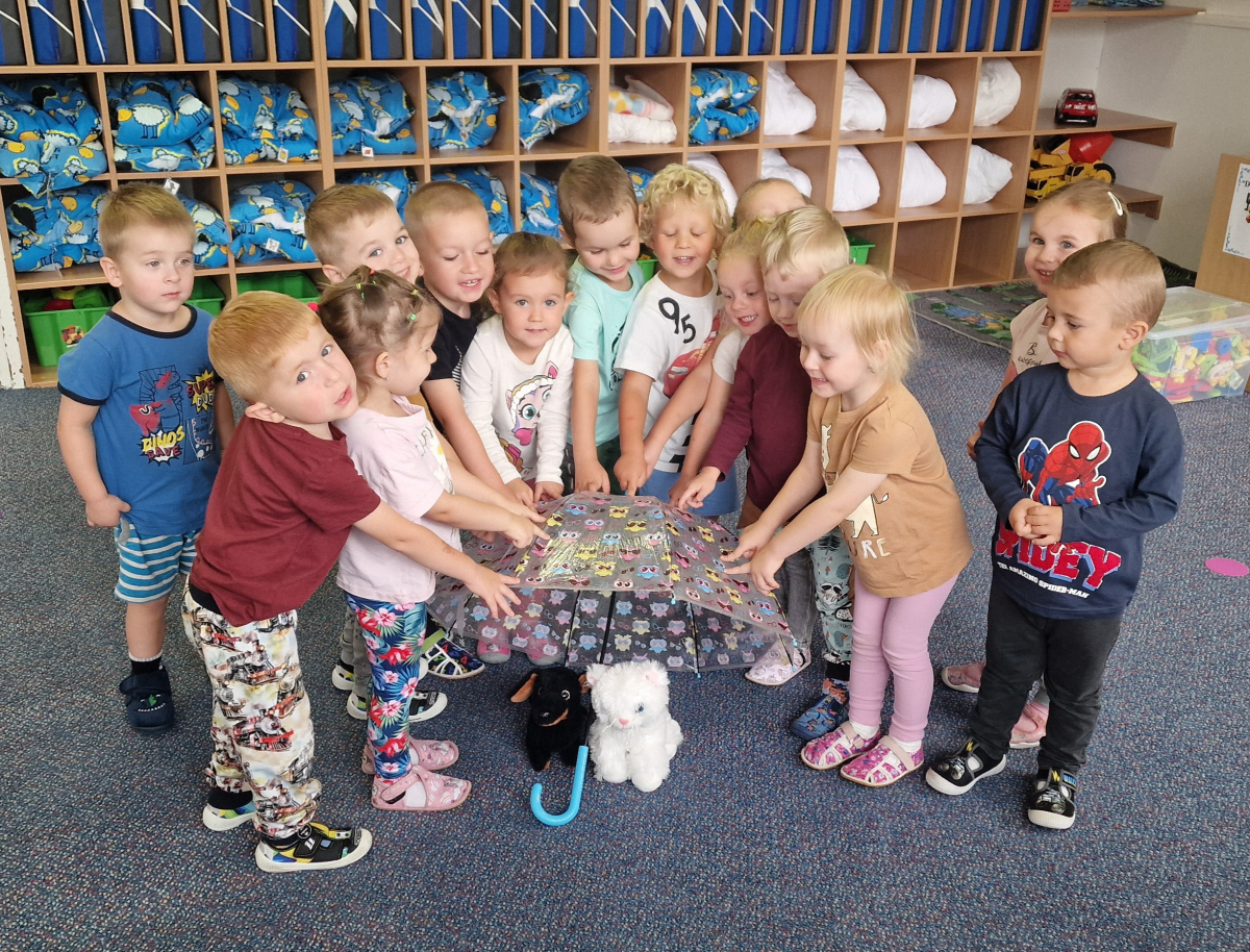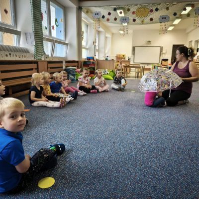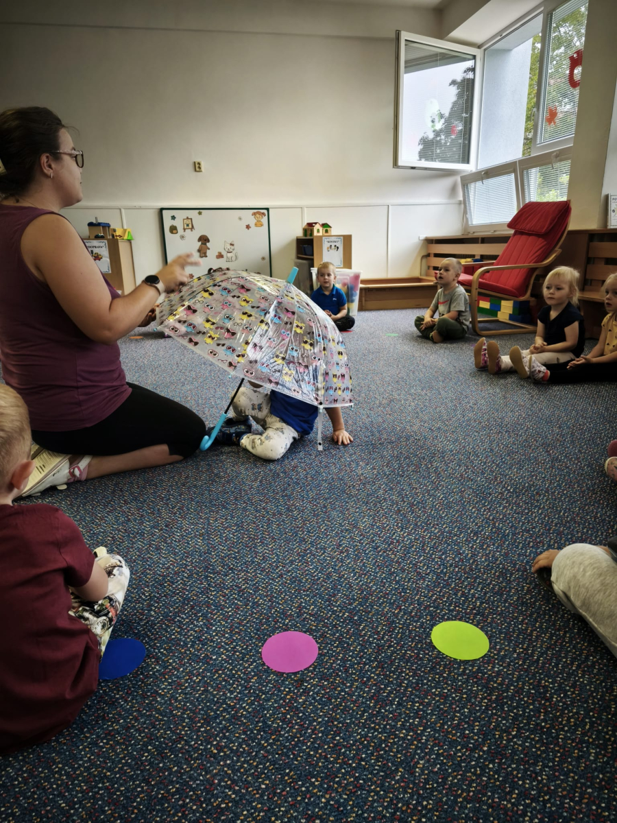 Zopakovali jsme si hru "Kolo, kolo mlýnský" a naučili jsme se novou hru "Deštník".