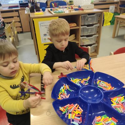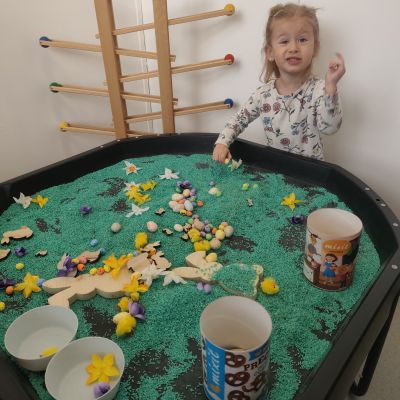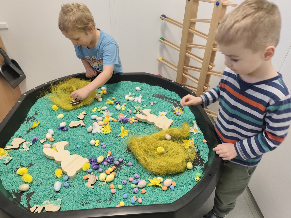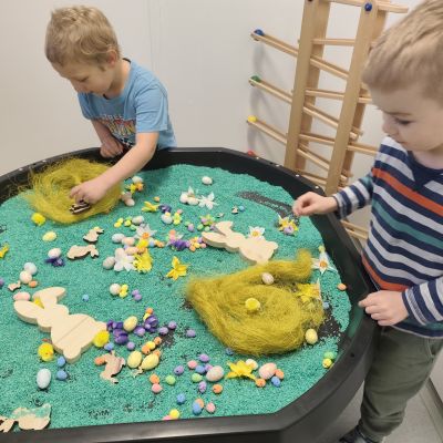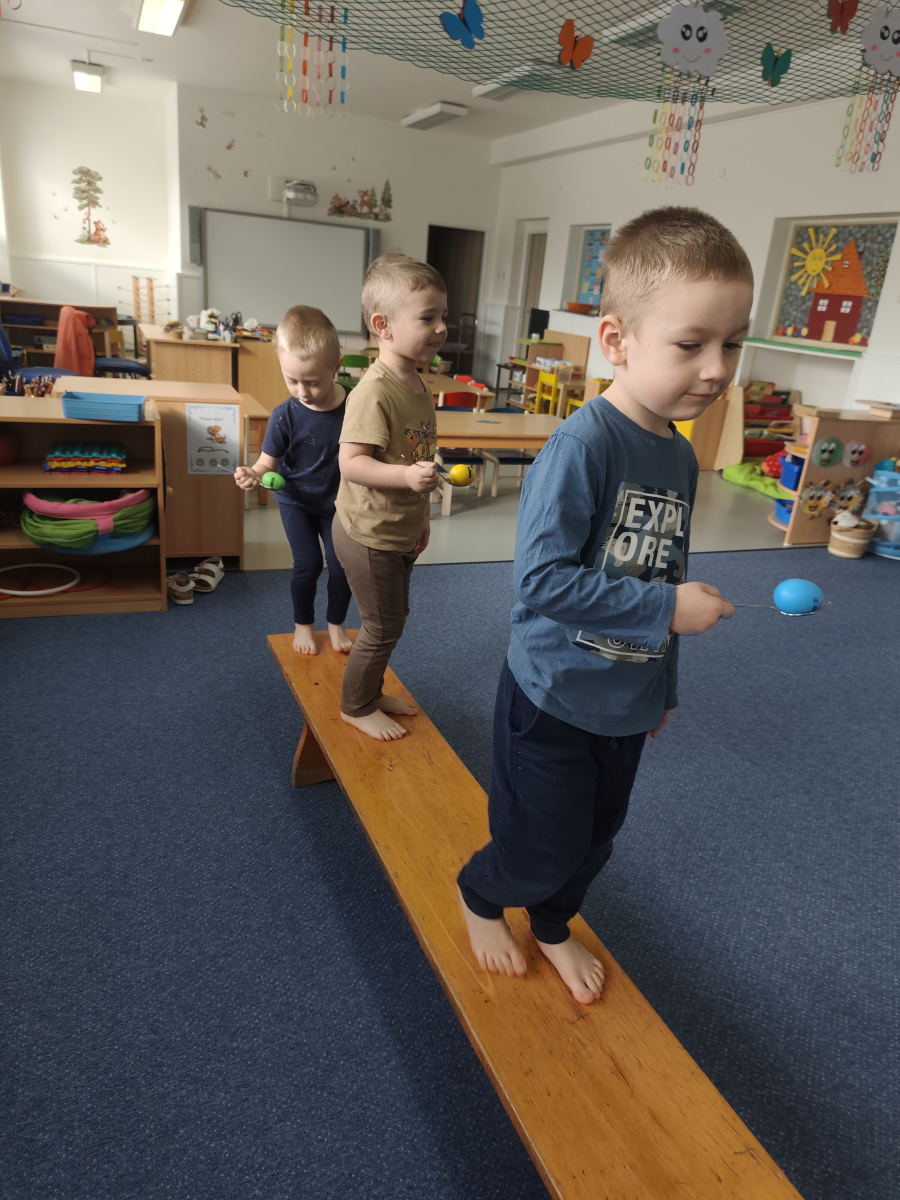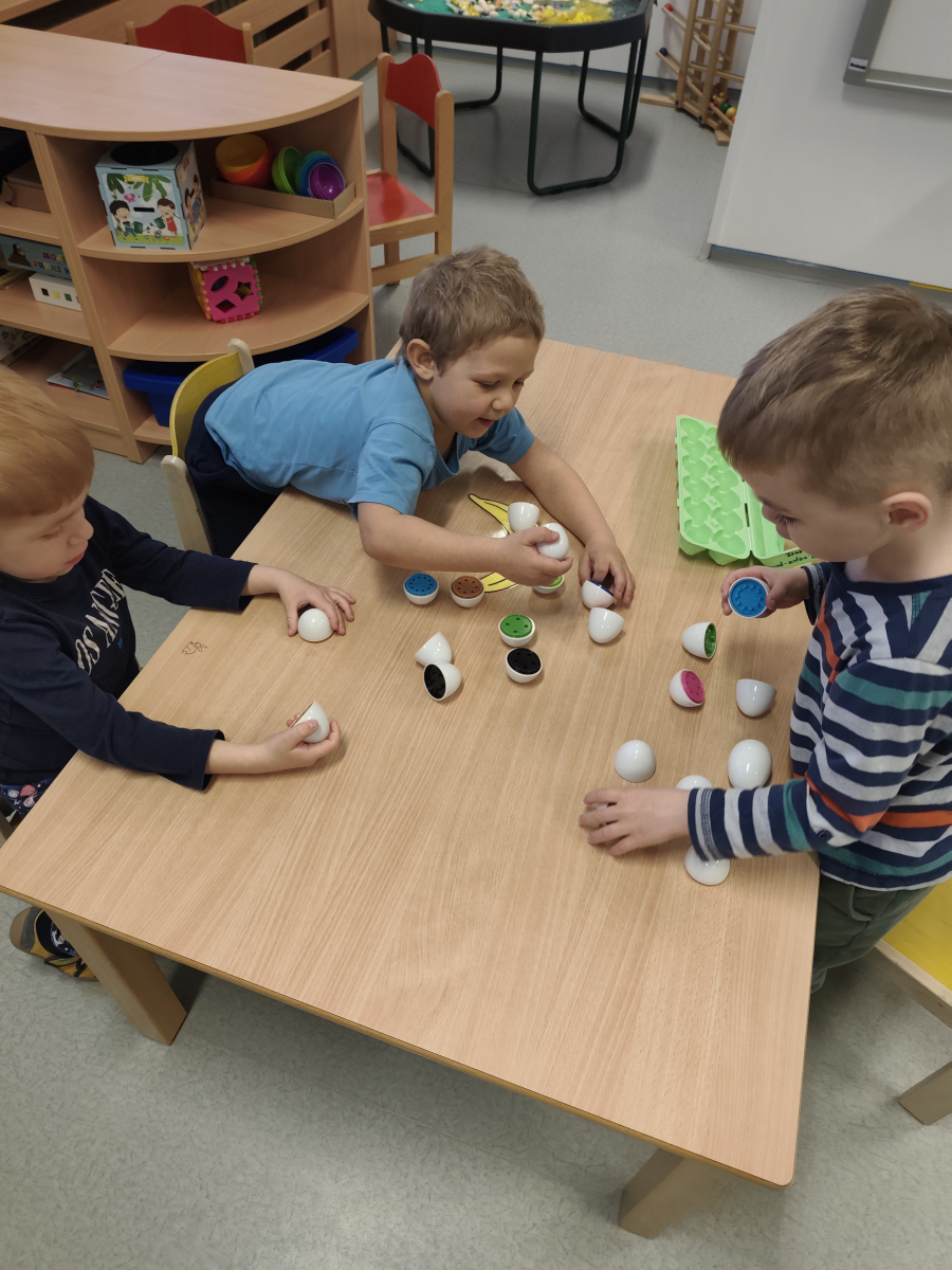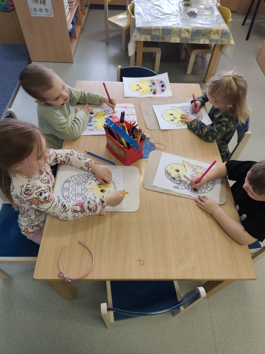 S dětmi jsme prožily velikonoční týden, plný her, tvoření a zábavy. Povídali jsme si o zvycích a tradicích Velikonoc, řešili jsme velikonoční úkoly, kdy jsme například hledali druhou půlku vajíčka, nebo zdobili korálky, zajíčkovi fousky. Taky na děti čekala velikonoční stezka, při které měly na lžíci vajíčko. Velkou zábavou pro děti bylo, když při hře, Chodí Pešek okolo.... měly v ruce místo obušku, pomlázku.Oslavili jsme Domčovi narozeniny, no a samozřejmě jsme zdobily různými technikami vajíčka, které jste pak někteří z vás, společně s jinými výrobky děti, z naší MŠ zakoupili, během velikonočního jarmarků. Mockrát děkujeme a přejeme krásné a pohodové prožití velikonočních svátků.
