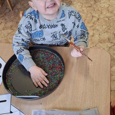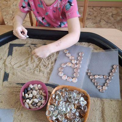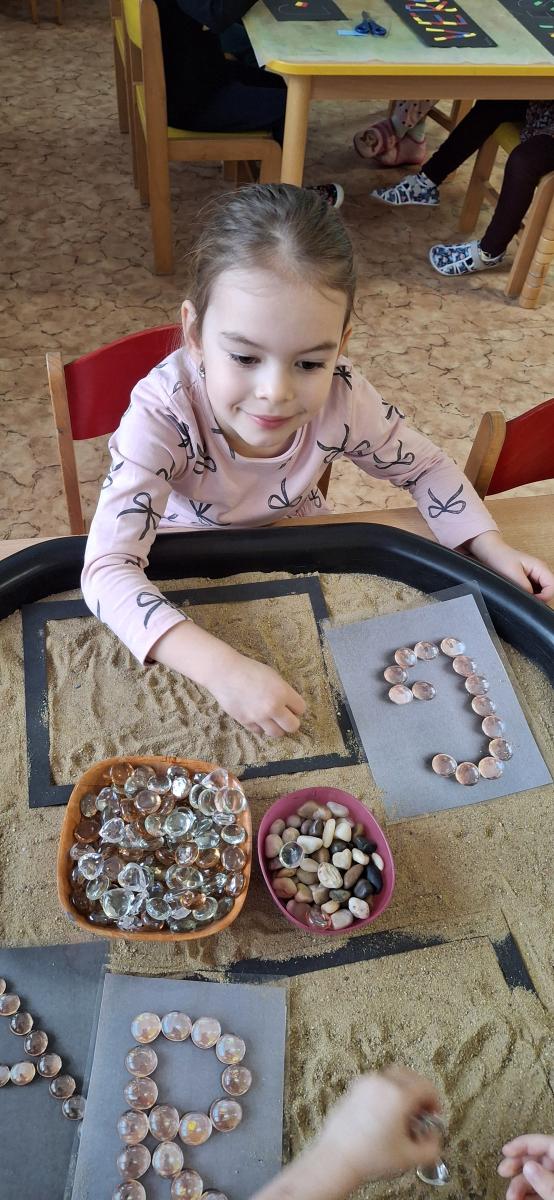 Důležitou součástí týdne bylo smyslové objevování na spyslovém tácu s pískem a kamínky, kde si děti zkoušely psát písmena prstem nebo je skládat z přírodnin. V matematickém koutku jsme se věnovali počítání s kolíčky, navlékání korálků podle zadání a stavění z Lega podle předlohy. Celý program jsme doplnili albi čtením knihy Hravá písmenka a nácvikem rytmické básničky Abeceda, která dětem hravě vysvětlila, jak se ze znaků skládá celý svět.