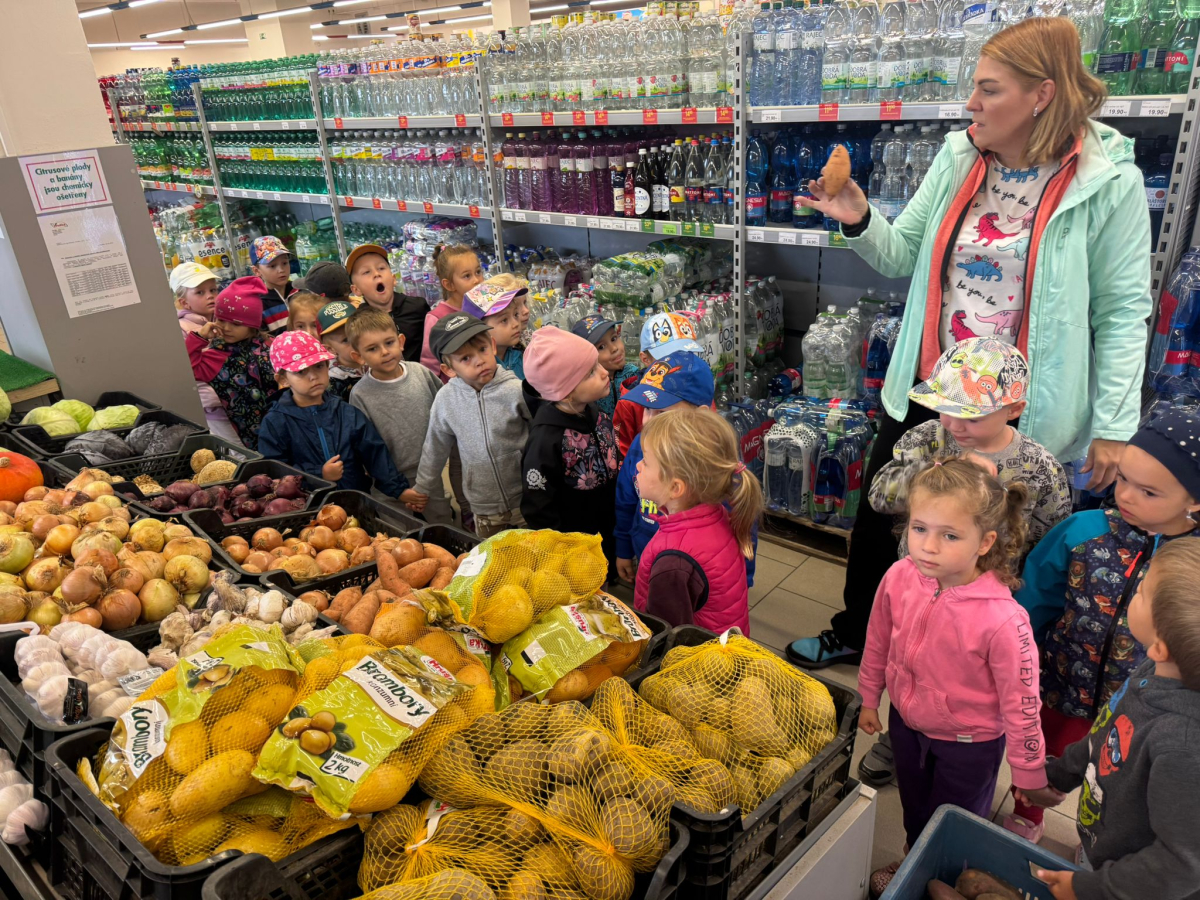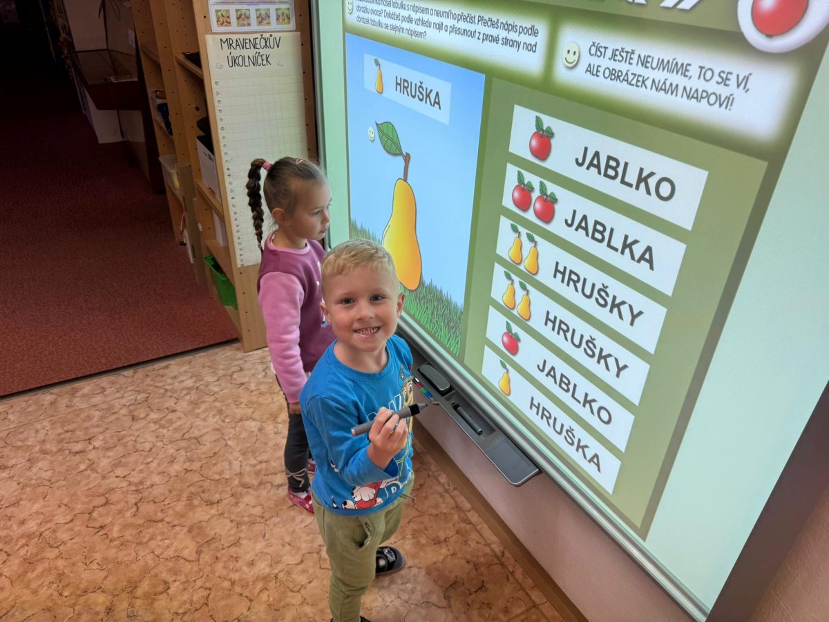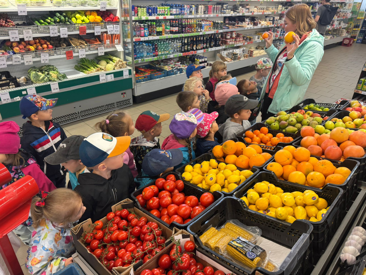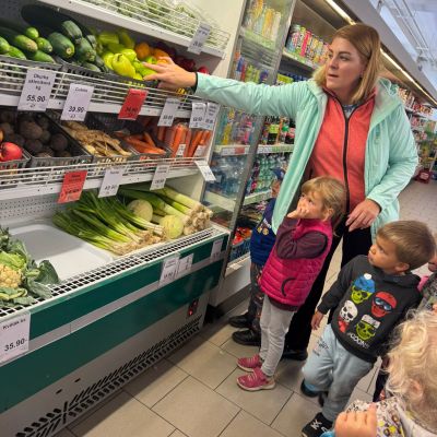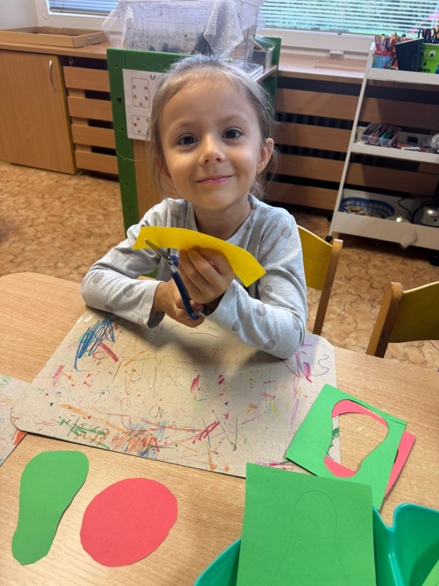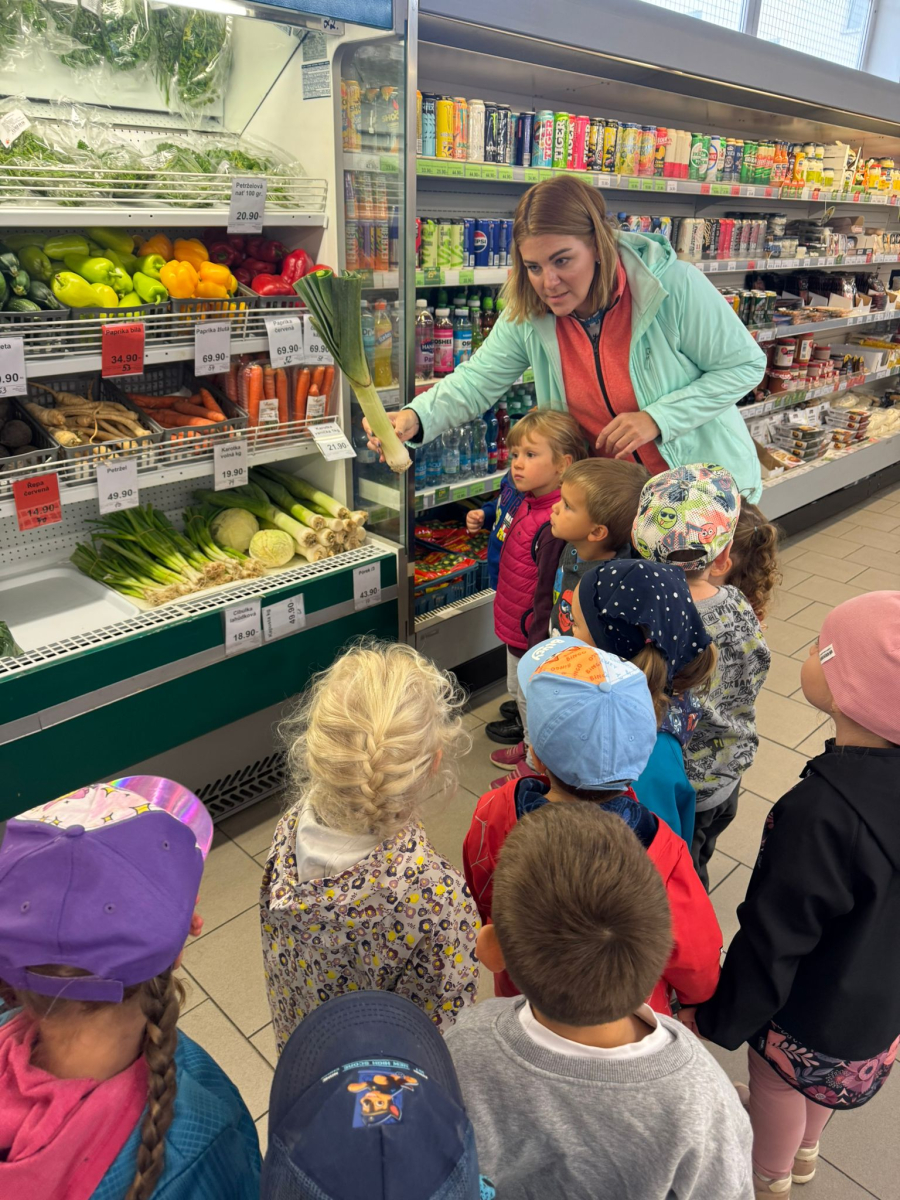 Velkým zážitkem byla návštěva obchodu Hruška, kde děti objevovaly, kolik druhů ovoce a zeleniny se dá v obchodě najít, a povídali jsme si o tom, odkud se do obchodu dostávají. Také jsme podnikli procházku do lesa a na závěr týdne proběhl náš Ovocno-zeleninový den – děti přinesly z domova různé druhy ovoce a zeleniny, společně jsme ochutnávali, poznávali chutě i vůně a zakončili jsme to multivitamínovou šťávou z odšťavňování.