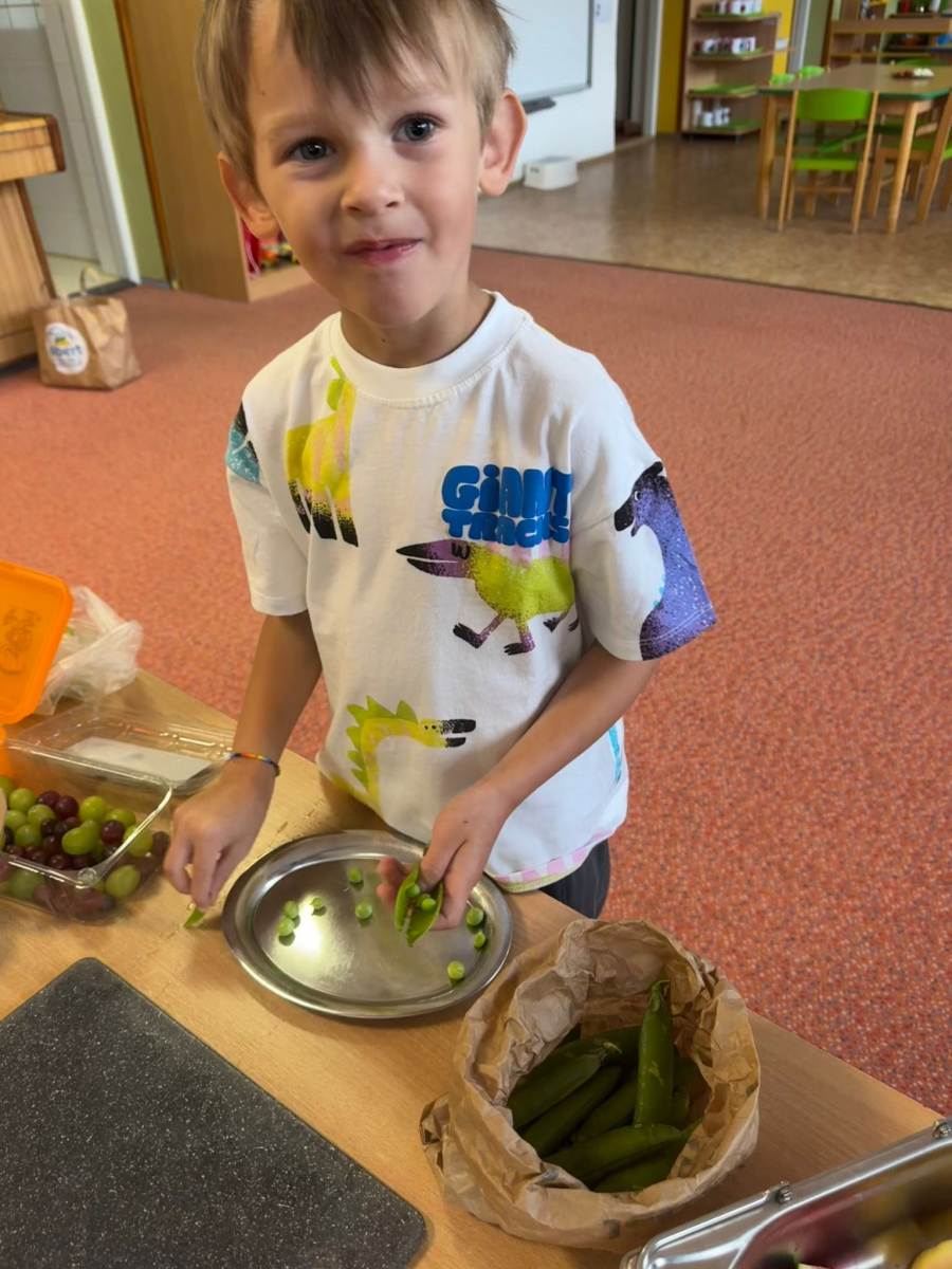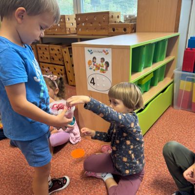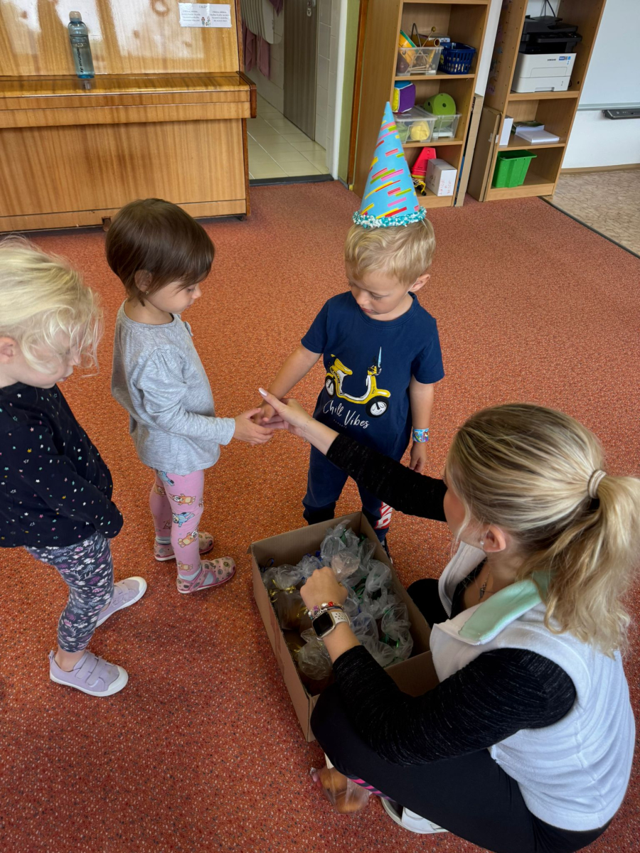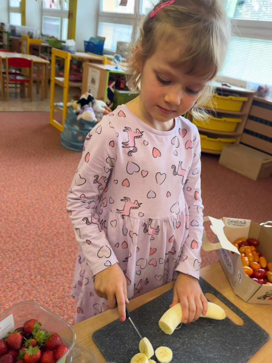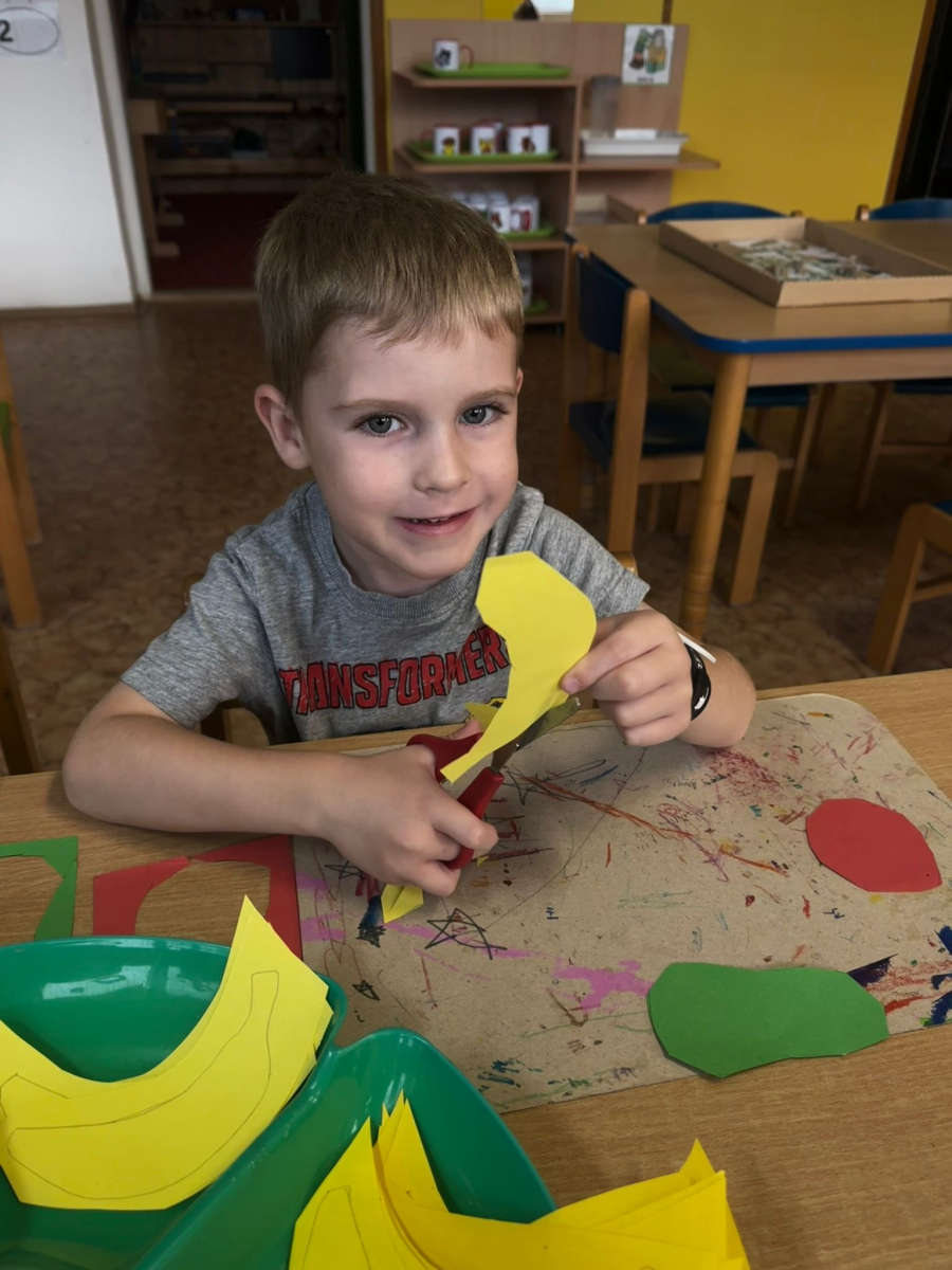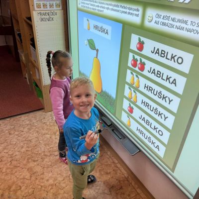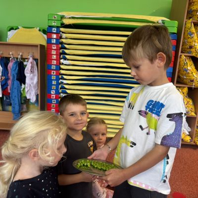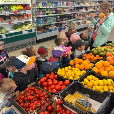 Velkým zážitkem byla návštěva obchodu Hruška, kde děti objevovaly, kolik druhů ovoce a zeleniny se dá v obchodě najít, a povídali jsme si o tom, odkud se do obchodu dostávají. Také jsme podnikli procházku do lesa a na závěr týdne proběhl náš Ovocno-zeleninový den – děti přinesly z domova různé druhy ovoce a zeleniny, společně jsme ochutnávali, poznávali chutě i vůně a zakončili jsme to multivitamínovou šťávou z odšťavňování.