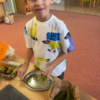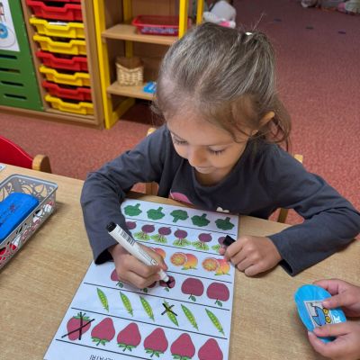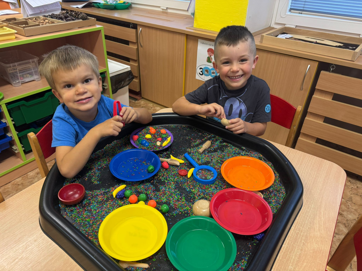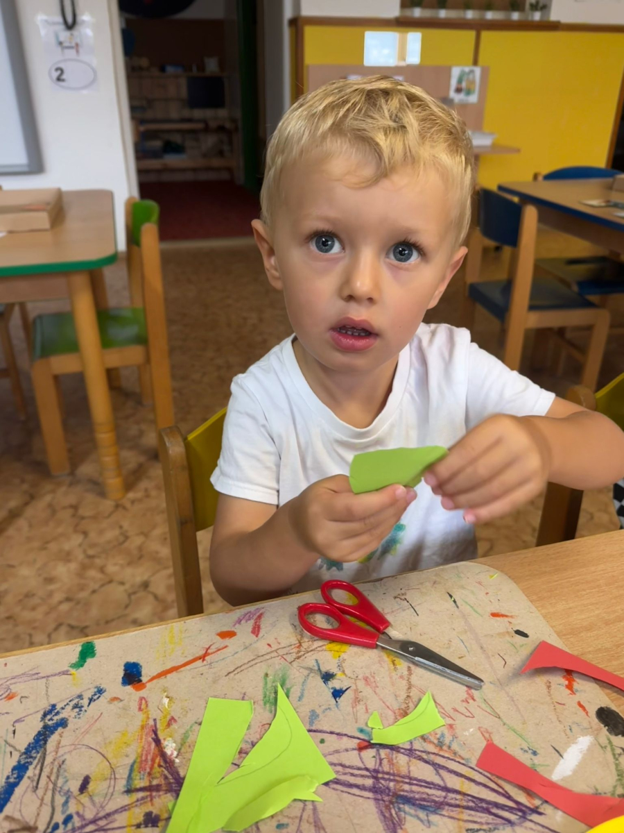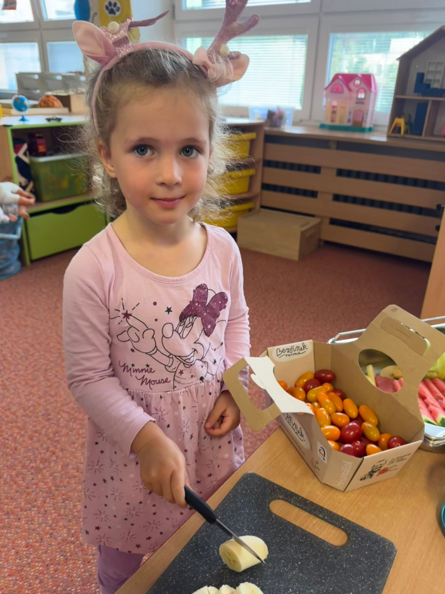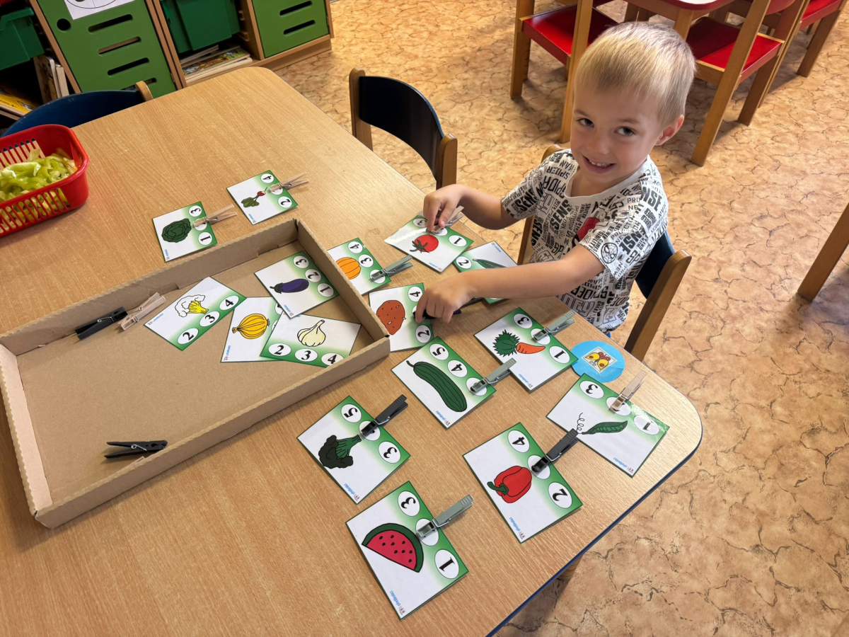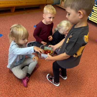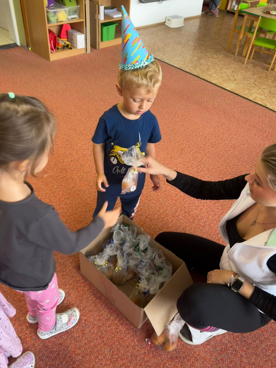 Velkým zážitkem byla návštěva obchodu Hruška, kde děti objevovaly, kolik druhů ovoce a zeleniny se dá v obchodě najít, a povídali jsme si o tom, odkud se do obchodu dostávají. Také jsme podnikli procházku do lesa a na závěr týdne proběhl náš Ovocno-zeleninový den – děti přinesly z domova různé druhy ovoce a zeleniny, společně jsme ochutnávali, poznávali chutě i vůně a zakončili jsme to multivitamínovou šťávou z odšťavňování.