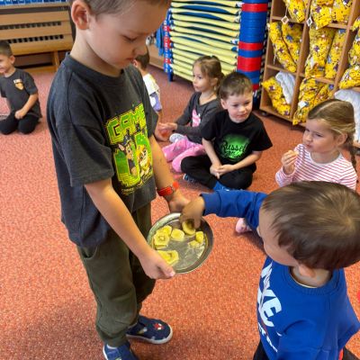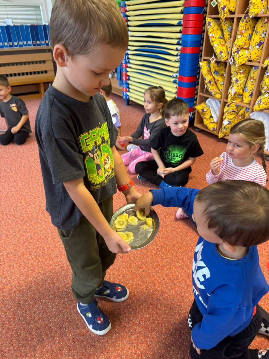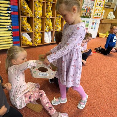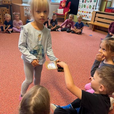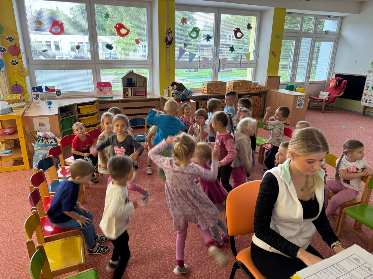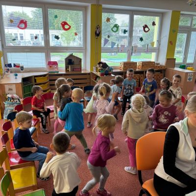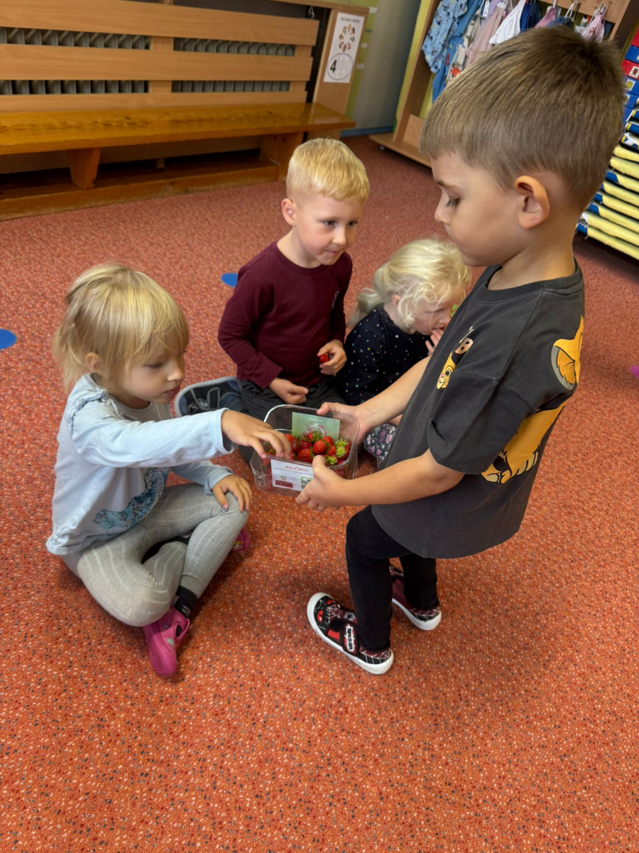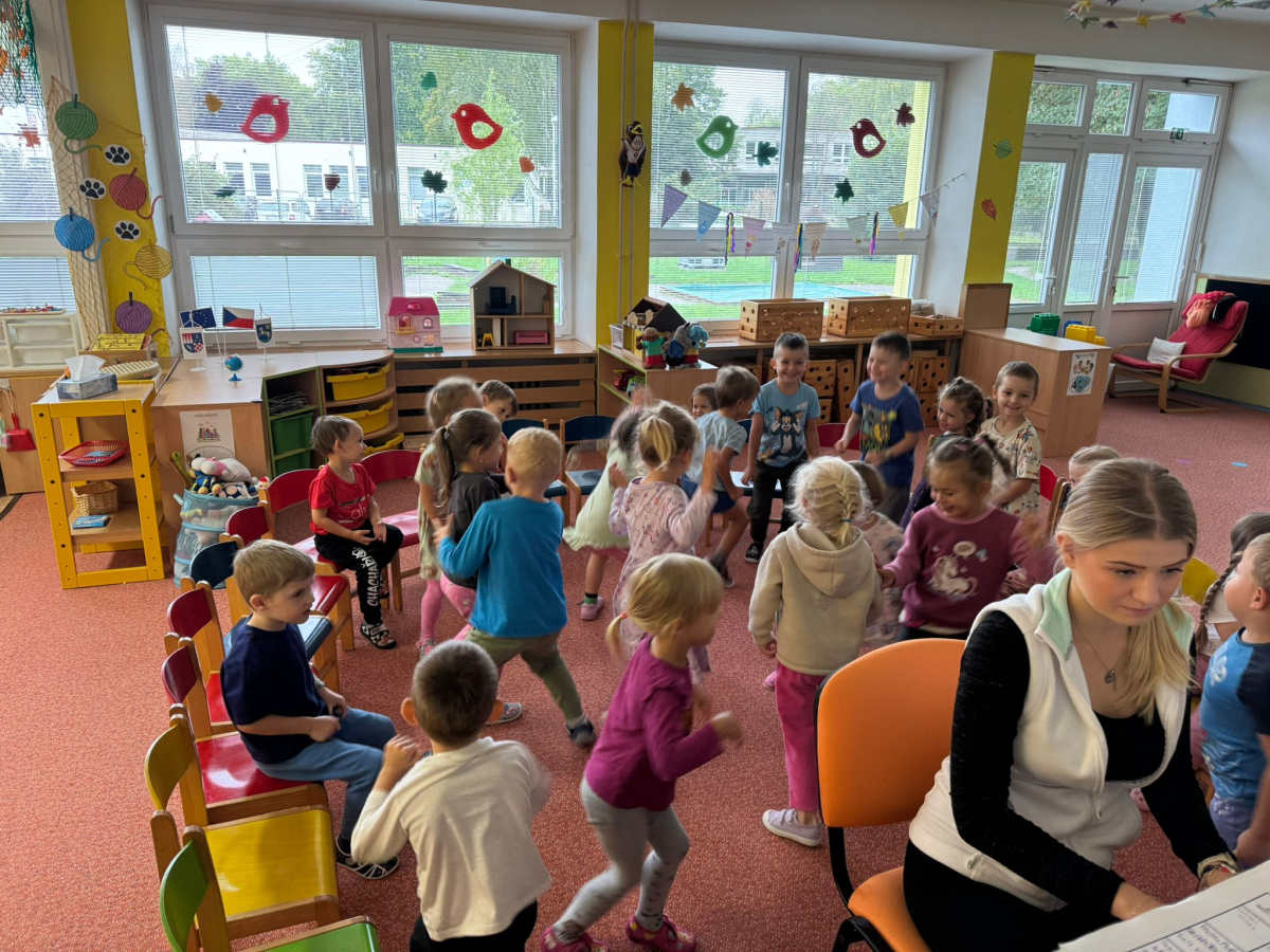 Společně jsme si zahráli různé pohybové hry, například „Na jablíčka a hrušky“, „Na zahradě“, nebo „Strom a plod“, kde si děti samy vyzkoušely být stromem i ovocem.