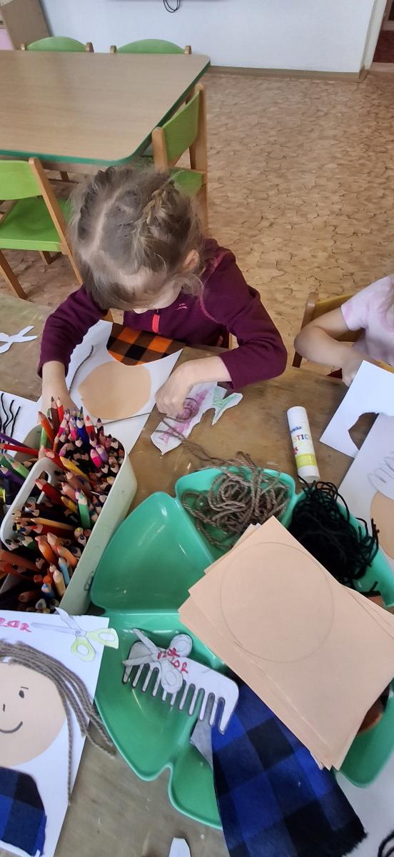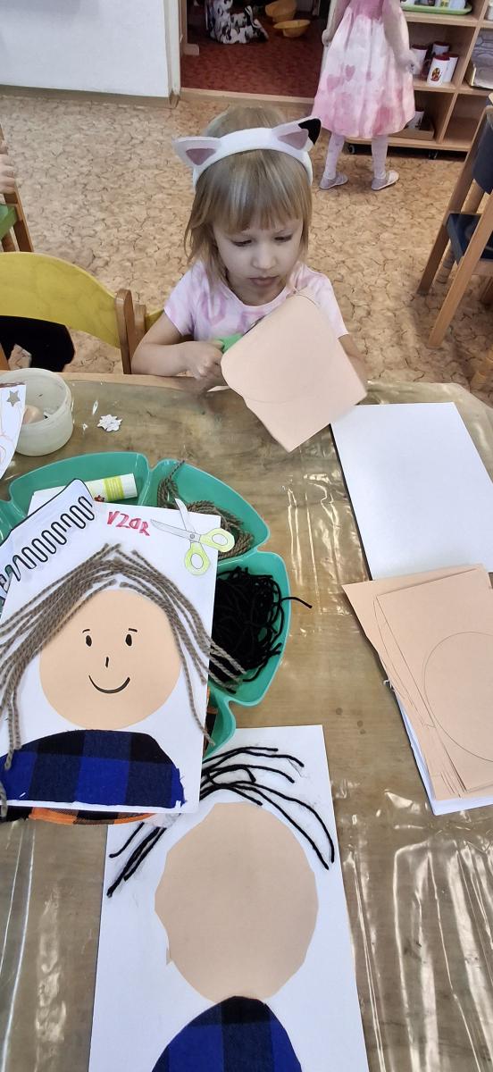 V komunitním kruhu jsme si povídali o tom, kdo komu pomáhá a proč je práce důležitá. Prohlíželi jsme si knihy, přiřazovali obrázky a rozvíjeli slovní zásobu. Naučili jsme se písničku Na trhu a básničku Popelář. Na interaktivní tabuli děti pracovaly s programem „Čím budu?“ a rozvíjely tak i digitální dovednosti. Ve výtvarné činnosti tvořily originální účesy z různých materiálů a v centrech aktivit stavěly, hrály pexeso a logické hry, přiřazovaly povolání k náčiní i vyhledávaly počáteční písmena slov.