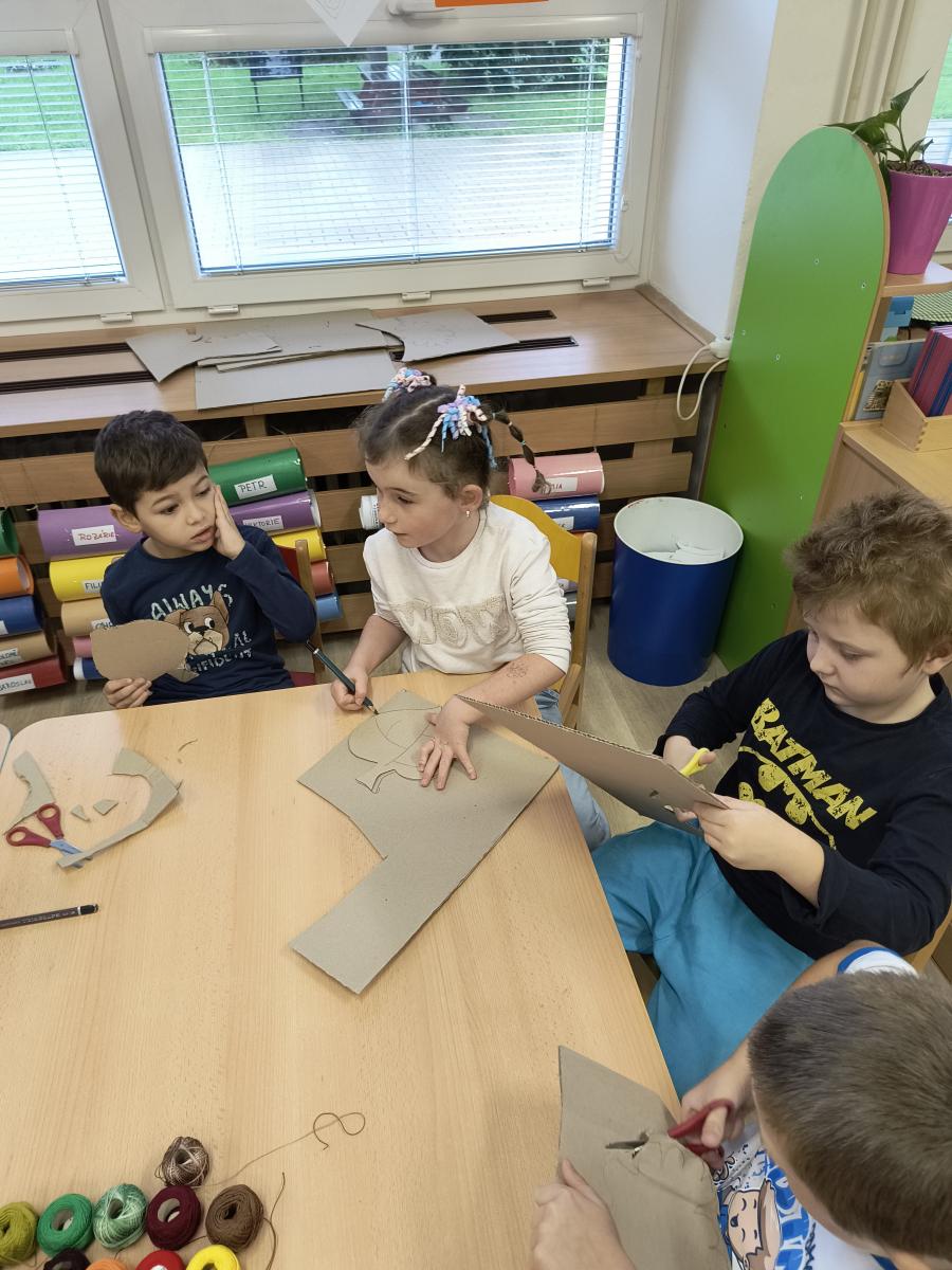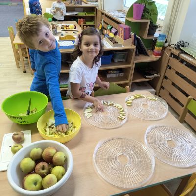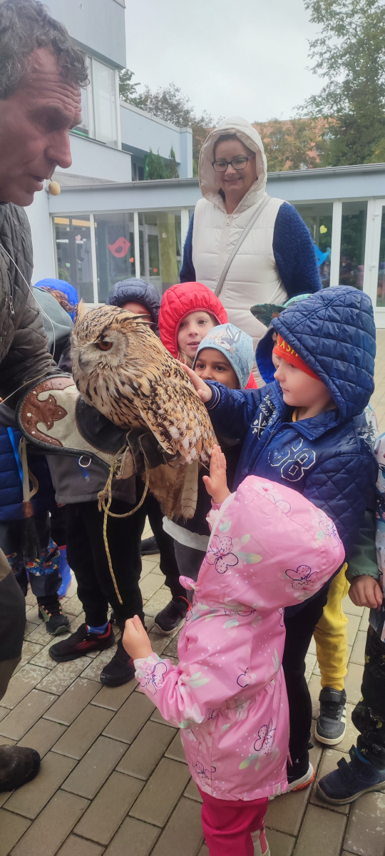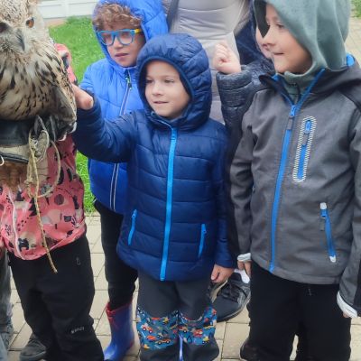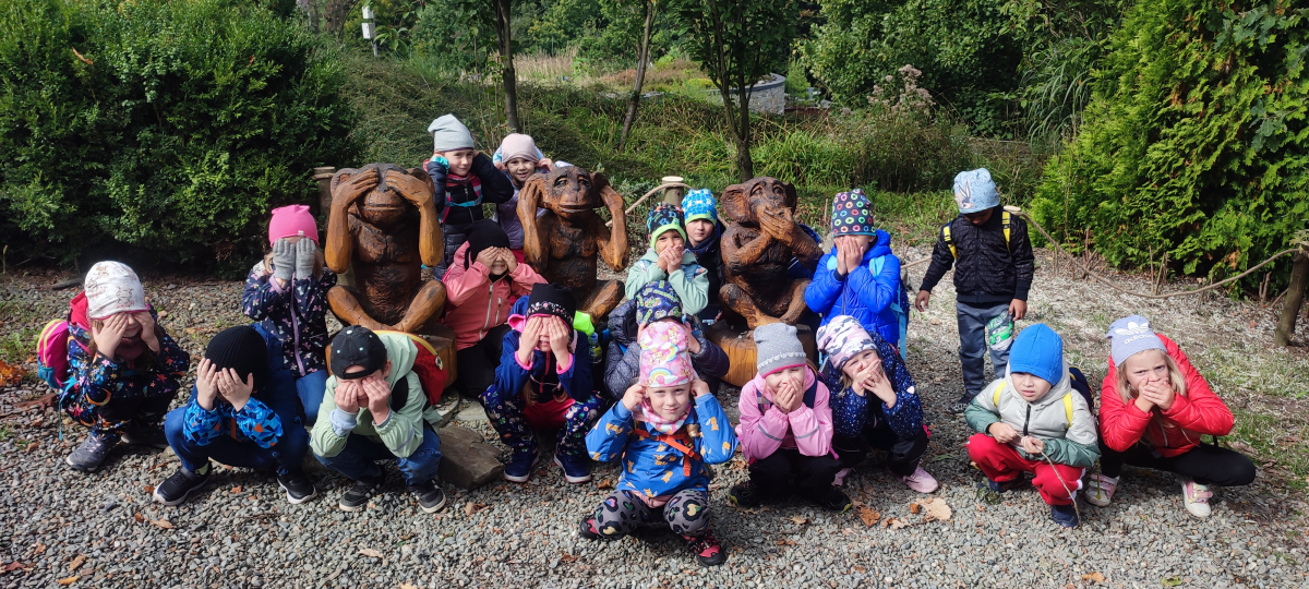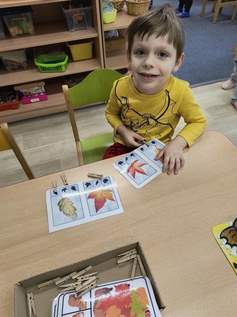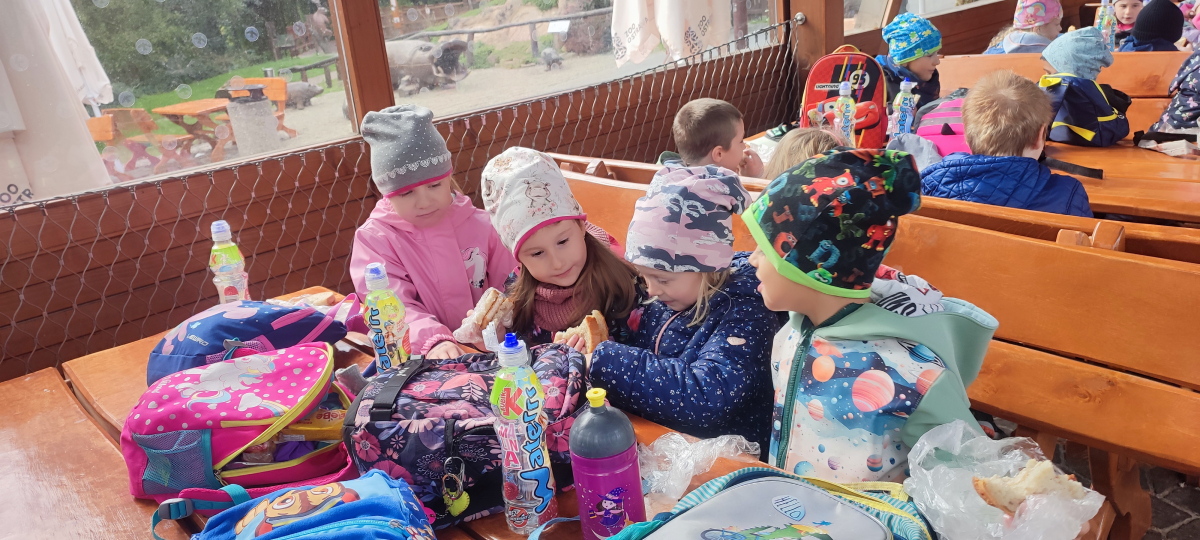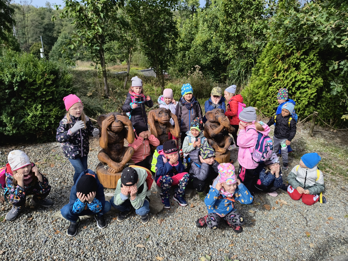 Tento týden sme pokračovali v podzimním tématu. Vyrazili jsme na výlet do ZOO, kde jsme si prohlédli zvířata a dozvěděli se nové zajímavosti. Na školní zahradě jsme měli možnost vidět přehlídku dravého ptactva – děti pozorovaly sovu, výra, puštíka, poštolku a další dravce zblízka a dozvěděly se, jak žijí. V rámci grafomotorických cvičení jsme trénovali kreslení podzimních tvarů, listů a plodů. Zahráli jsme si na detektivy při hledání stínů podzimního listí a plodů – děti si procvičily zrakovou pozornost i představivost. Při tvoření jsme obkreslovali tvary listů, vystřihovali je a omotávali bavlnkami v podzimních barvách – vznikly krásné barevné dekorace. Z nasbíraných kaštanů jsme se pustili do zábavného učení a sestavovali jsme abecedu. A protože k podzimu patří i dobroty, společně jsme sušili jablíčka na křížaly – děti si vyzkoušely, jak se dá ovoce zpracovat na zimní zásoby.