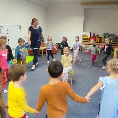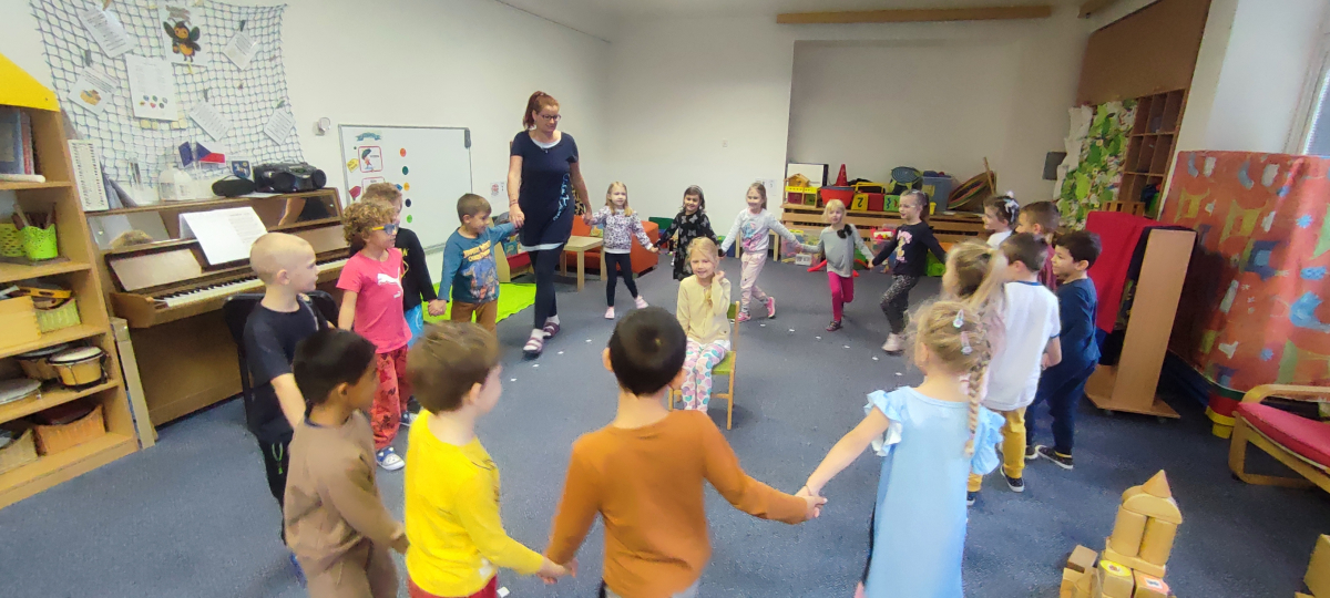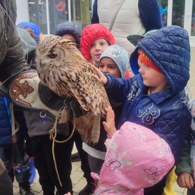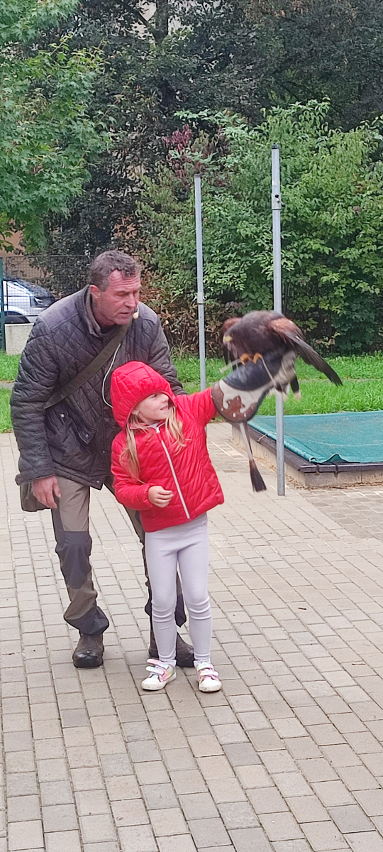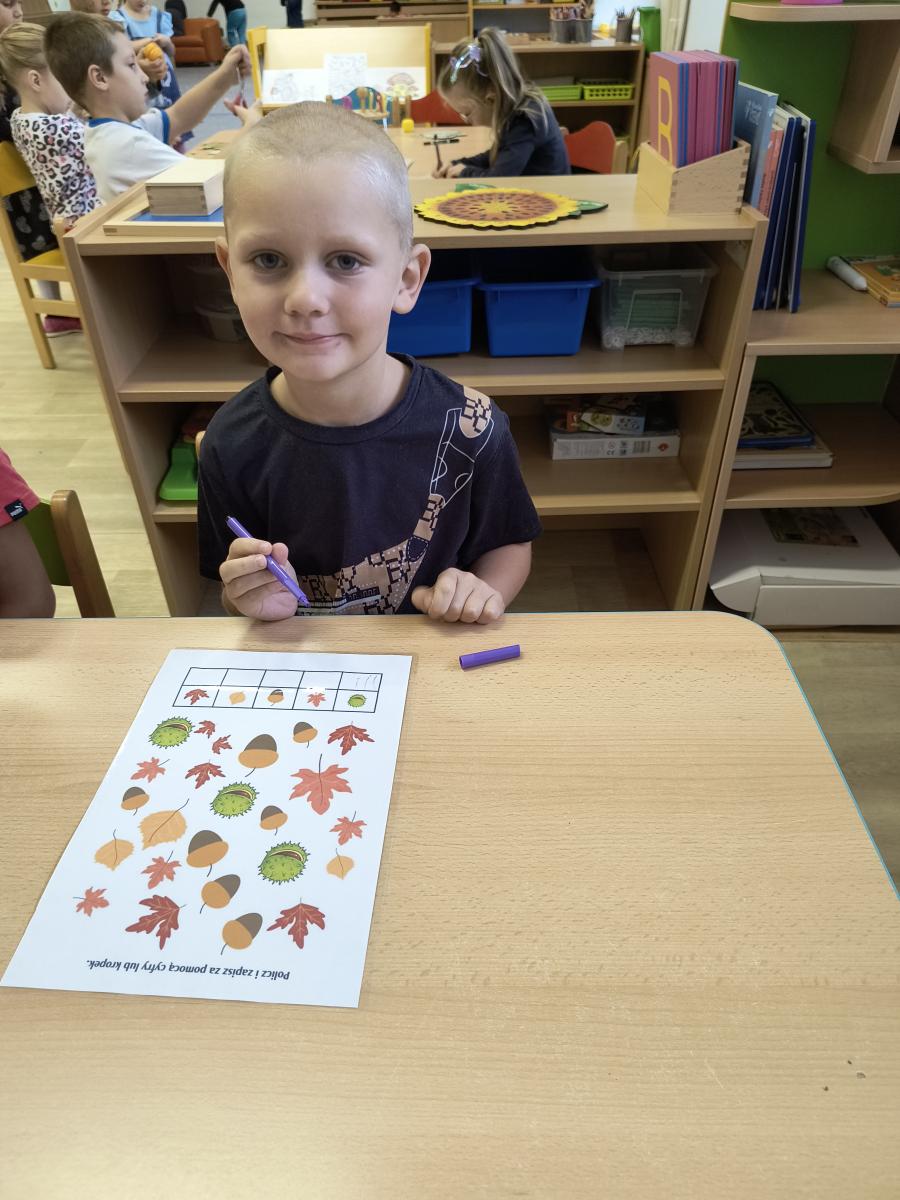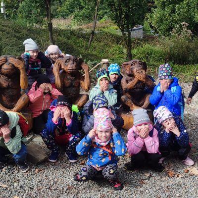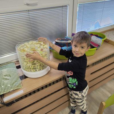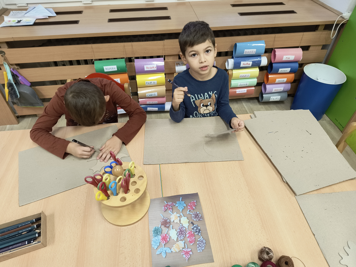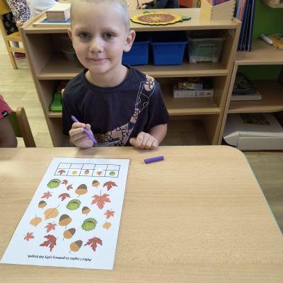 Tento týden sme pokračovali v podzimním tématu. Vyrazili jsme na výlet do ZOO, kde jsme si prohlédli zvířata a dozvěděli se nové zajímavosti. Na školní zahradě jsme měli možnost vidět přehlídku dravého ptactva – děti pozorovaly sovu, výra, puštíka, poštolku a další dravce zblízka a dozvěděly se, jak žijí. V rámci grafomotorických cvičení jsme trénovali kreslení podzimních tvarů, listů a plodů. Zahráli jsme si na detektivy při hledání stínů podzimního listí a plodů – děti si procvičily zrakovou pozornost i představivost. Při tvoření jsme obkreslovali tvary listů, vystřihovali je a omotávali bavlnkami v podzimních barvách – vznikly krásné barevné dekorace. Z nasbíraných kaštanů jsme se pustili do zábavného učení a sestavovali jsme abecedu. A protože k podzimu patří i dobroty, společně jsme sušili jablíčka na křížaly – děti si vyzkoušely, jak se dá ovoce zpracovat na zimní zásoby.