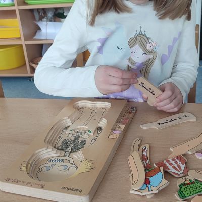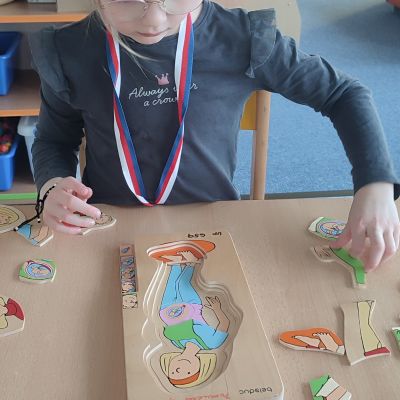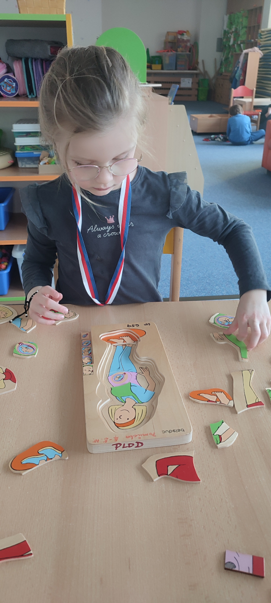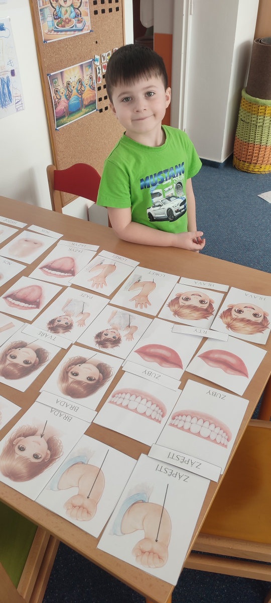 Tento týden jsme se hlouběji seznamovali s lidským tělem a s tím, jak o něj správně pečovat. Povídali jsme si o tom, že naše tělo netvoří jen svaly, kosti a orgány, které si dokážeme představit nebo je vidíme na obrázcích. Stejně důležité je také to, co na první pohled nevidíme – naše zdraví, energie a celková pohoda. Děti se tak přirozenou formou seznamovaly se základy zdravého životního stylu a učily se přemýšlet o tom, co našemu tělu prospívá.