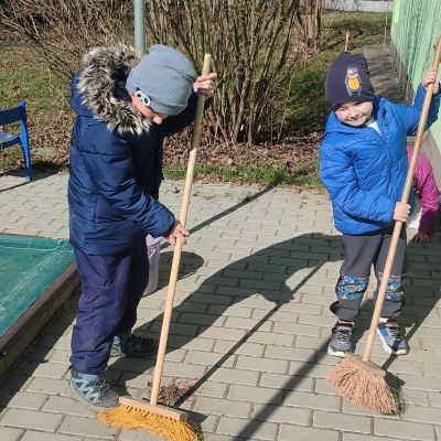 A to ještě není všechno – tento týden jsme rozhodně nezaháleli. Společně jsme pomáhali s úklidem školní zahrady, kde jsme hrabali a uklízeli spadané listí. Děti si tak vyzkoušely, jak mohou přiložit ruku k dílu, spolupracovat a pečovat o prostředí kolem sebe.