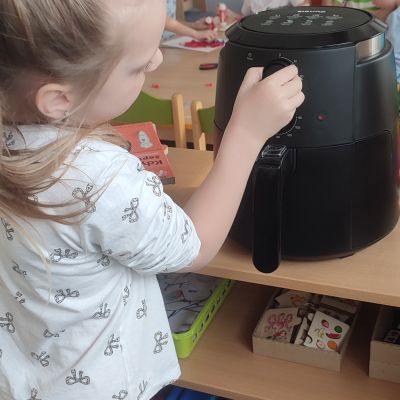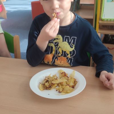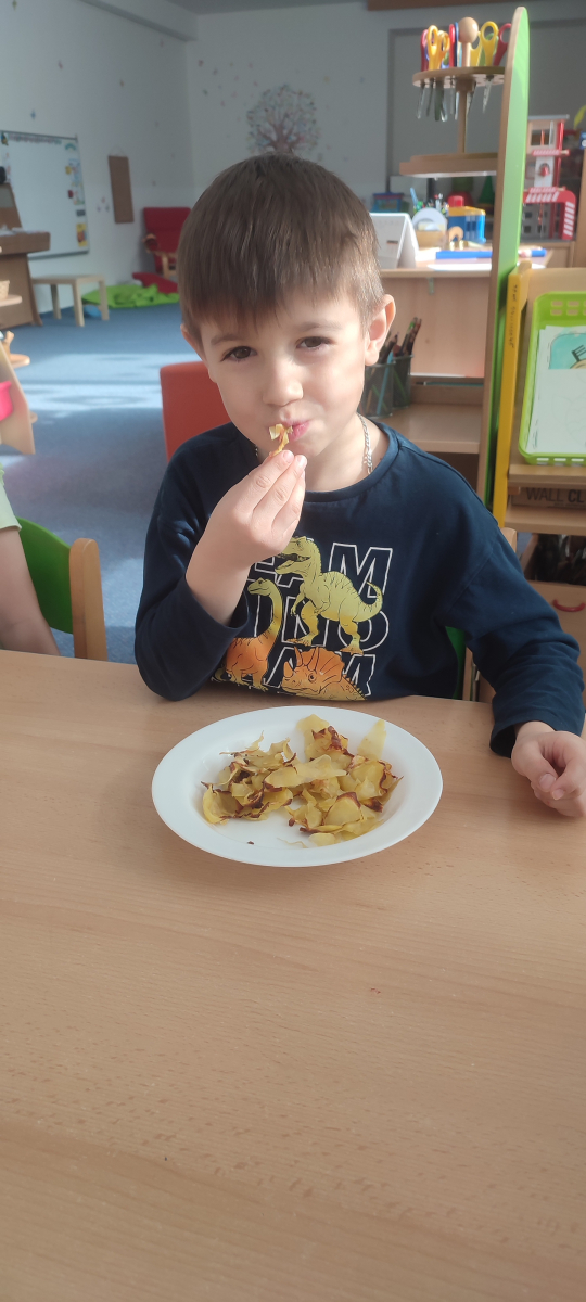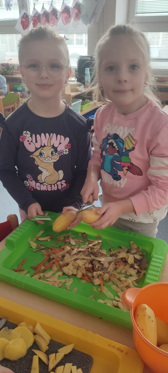 Abychom si zdravý životní styl vyzkoušeli i v praxi, společně jsme si připravili zdravé hranolky. Děti měly možnost ochutnat hranolky z různých druhů zeleniny – z batátů, klasických brambor, celeru i mrkve. Hranolky jsme připravovali bez přidané soli a tuků, a děti tak mohly zjistit, že i zdravé jídlo může být velmi chutné. Při společné přípravě si procvičily spolupráci, samostatnost i smyslové vnímání.