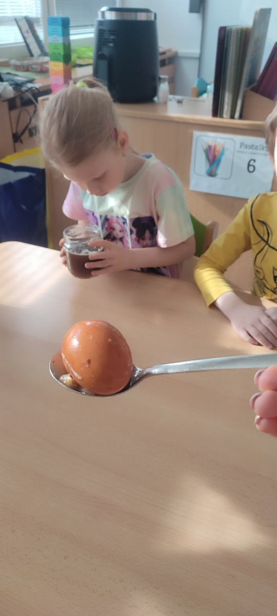 Věnovali jsme se také tématu nezdravých potravin a slazených nápojů. Povídali jsme si o tom, které potraviny našemu tělu příliš neprospívají, proč obsahují velké množství cukru a dalších látek, které bychom měli konzumovat jen výjimečně. Na závěr jsme si připravili malý pozorovací pokus. Do skleničky se slazeným nápojem jsme vložili váleček a společně budeme v následujících dnech sledovat, jak na něj nápoj působí. Děti tak mohou vlastní zkušeností pozorovat změny a přemýšlet o tom, jak mohou podobné nápoje působit například na naše zuby.