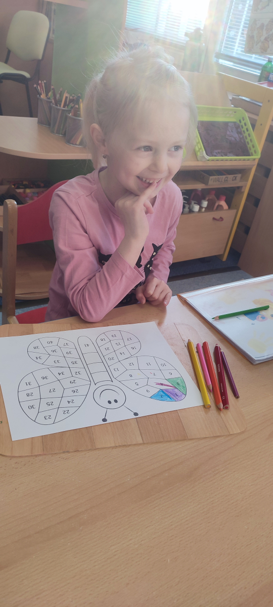 V průběhu týdne jsme si opakovali naučené básničky a písničky, procvičovali rytmizaci a rozvíjeli sluchové vnímání. Děti pracovaly s portfolii, kde se věnovaly sebehodnocení (např. vybarvování částí motýlka dle svých dovedností). Pracovali jsme také s pracovním sešitem „Se sokolem do života“, kde děti hodnotily splněné úkoly pomocí nálepek, a dále plnily úkoly v pracovních listech (např. vybarvování podle čísel).