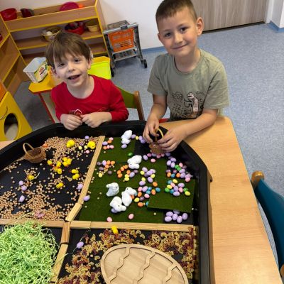 Součástí týdne byly i různorodé aktivity a didaktické hry zaměřené na velikonoční tematiku. Děti si užily například hledání velikonočních pokladů, při kterém procvičovaly orientaci v prostoru, spolupráci i logické uvažování. Aktivity byly zaměřené také na rozvoj pohybových dovedností, koordinace a vzájemné komunikace.