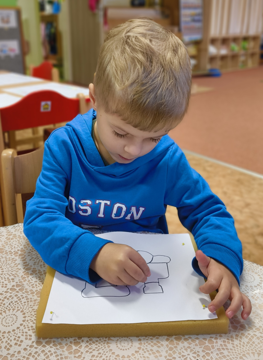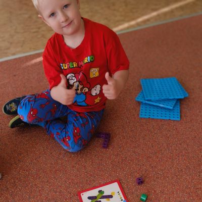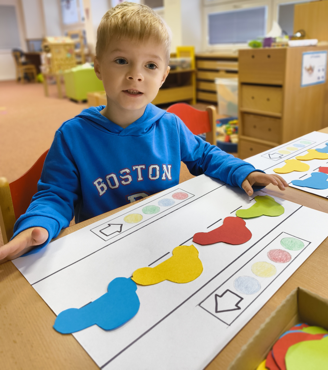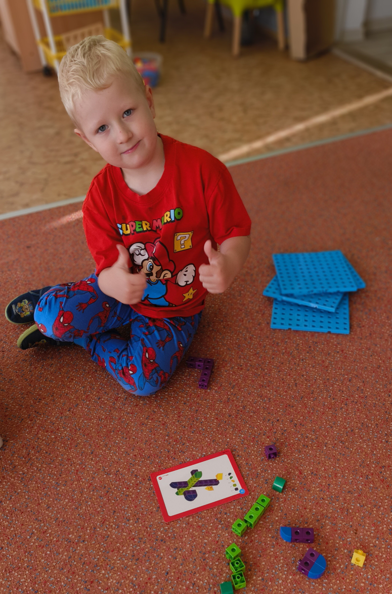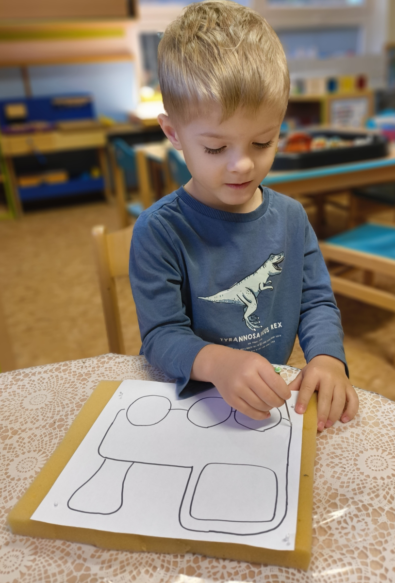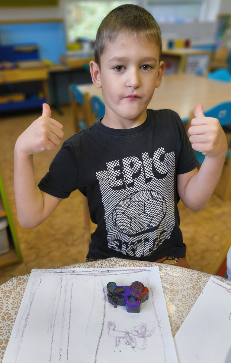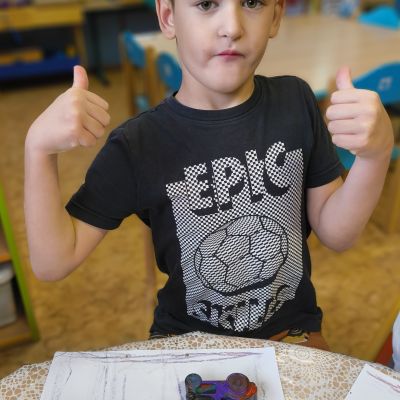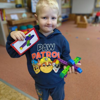 Pokračovali jsme v tématu dopravní prostředky, zaměřili jsme se na rozhovory, popis obrázku ve větách, užívání předložek, množného čísla. Zkusili jsme si zapamatovat 3 slova, krátký text a znovu ho převyprávět. Vypichovali jsme, kreslili jsme cestu, vystřihovali jsme auta. Kreslili jsme jedním tahem.Určovali jsme kam patří dopravní prostředky. Skládali jsme puzzle, garáže, a dopravní prostředky dle návodu z různých stavebnic. Cvičili jsme levopravou orientaci a barvy. Venku jsme se byli dívat na točnu tramvají v lese. Pozorovali, určovali a počítali jsme dopravní prostředky na velké cestě.