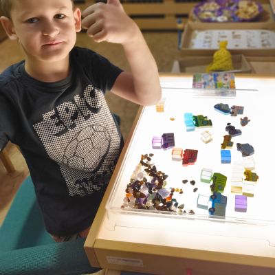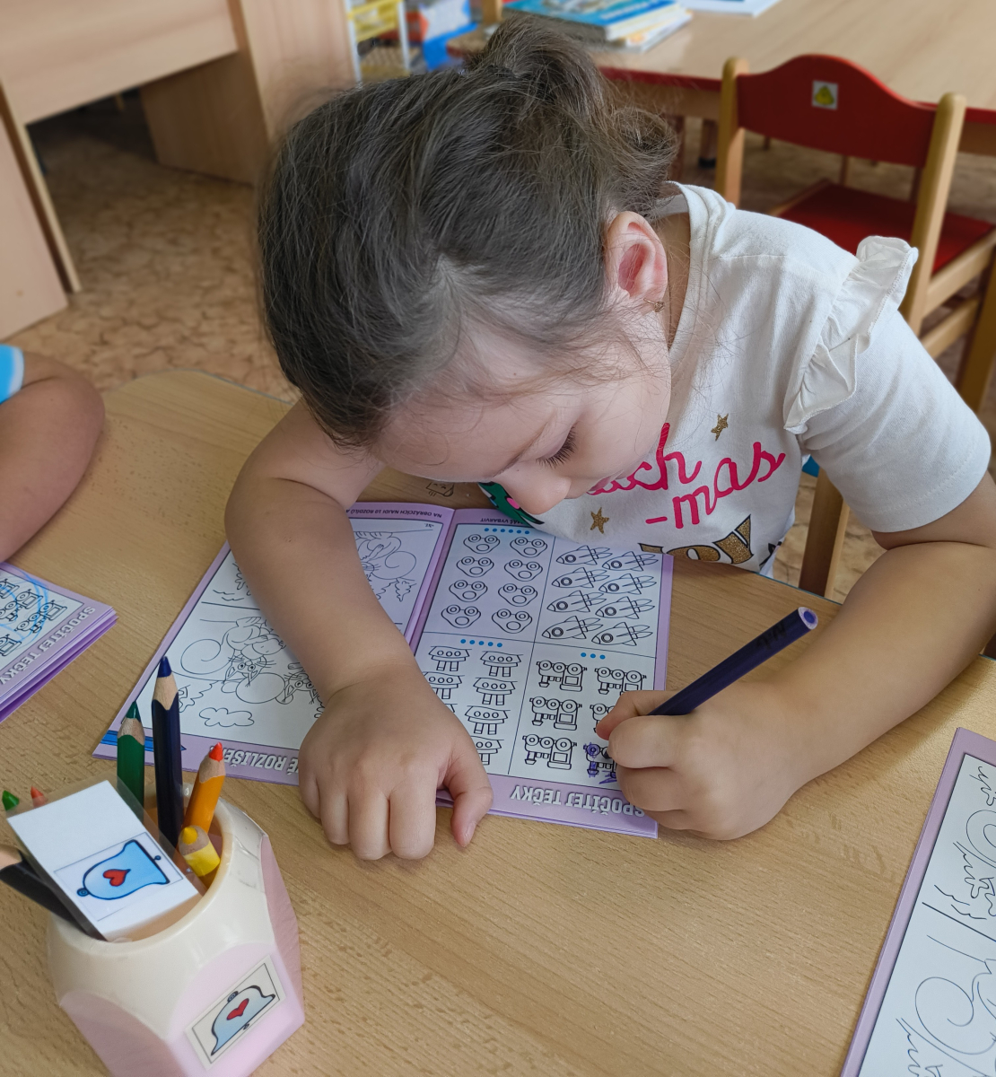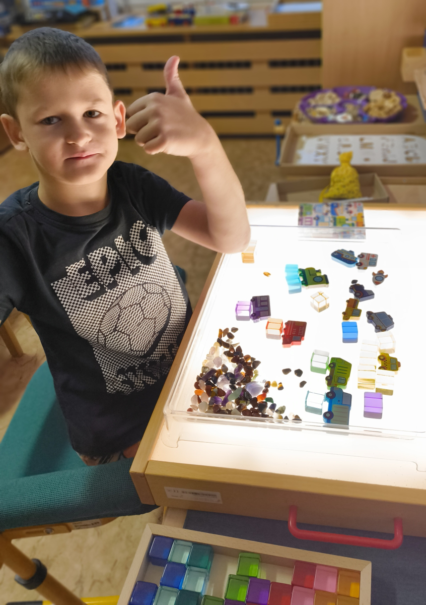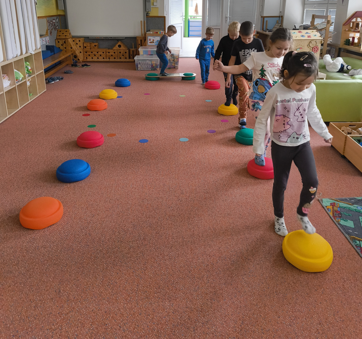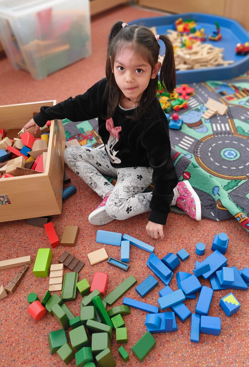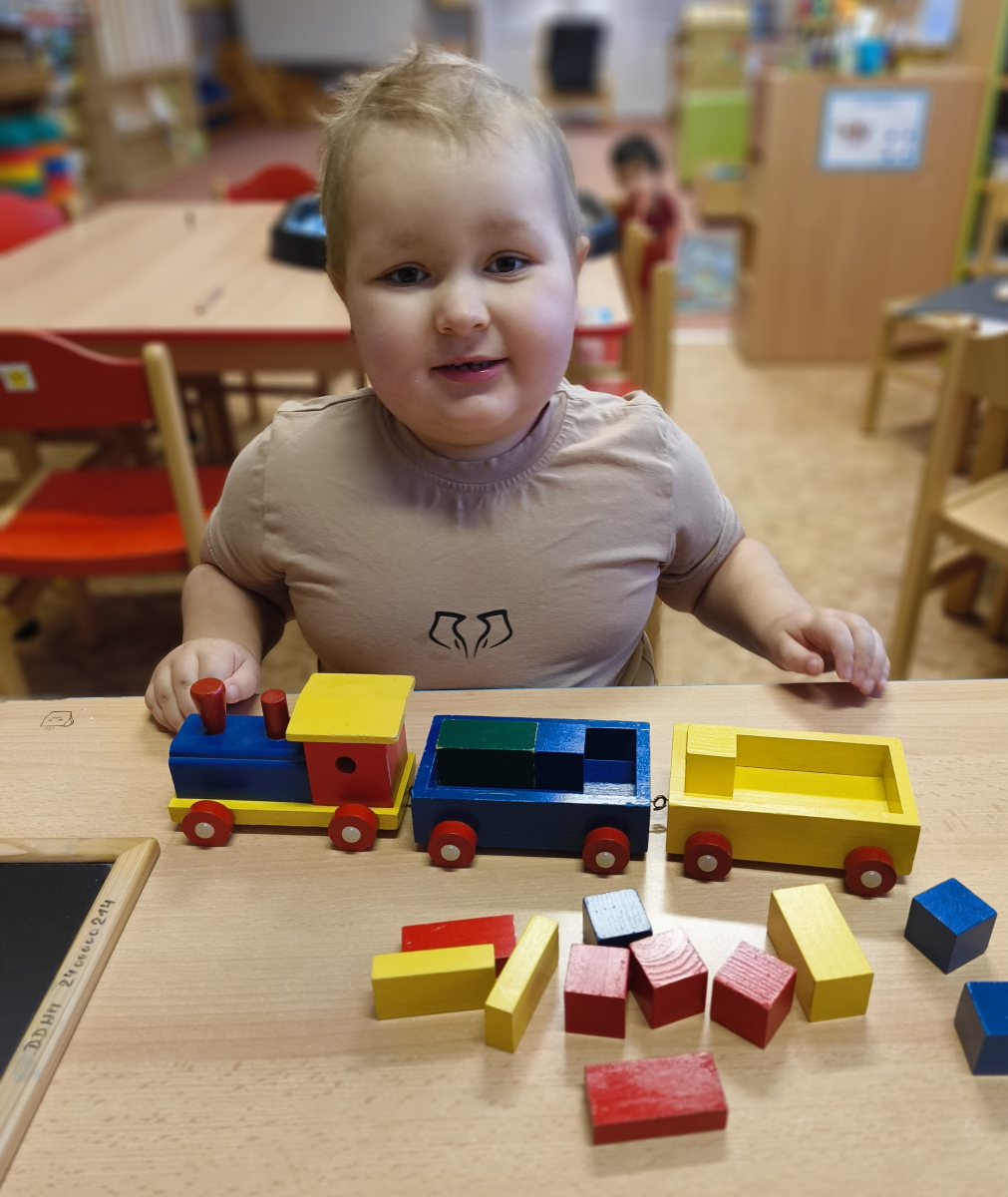 Pokračovali jsme v tématu dopravní prostředky, zaměřili jsme se na rozhovory, popis obrázku ve větách, užívání předložek, množného čísla. Zkusili jsme si zapamatovat 3 slova, krátký text a znovu ho převyprávět. Vypichovali jsme, kreslili jsme cestu, vystřihovali jsme auta. Kreslili jsme jedním tahem.Určovali jsme kam patří dopravní prostředky. Skládali jsme puzzle, garáže, a dopravní prostředky dle návodu z různých stavebnic. Cvičili jsme levopravou orientaci a barvy. Venku jsme se byli dívat na točnu tramvají v lese. Pozorovali, určovali a počítali jsme dopravní prostředky na velké cestě.