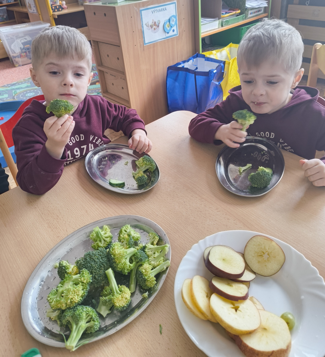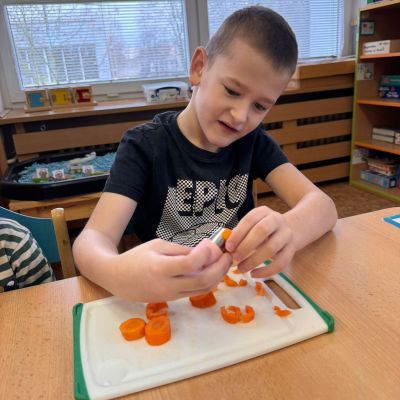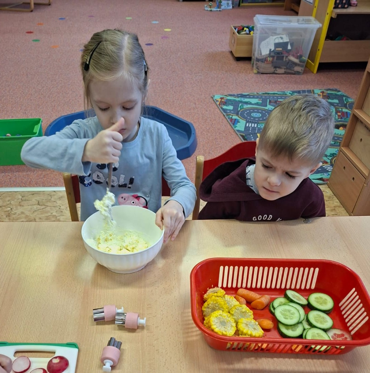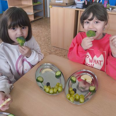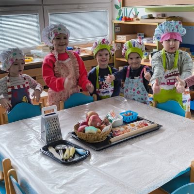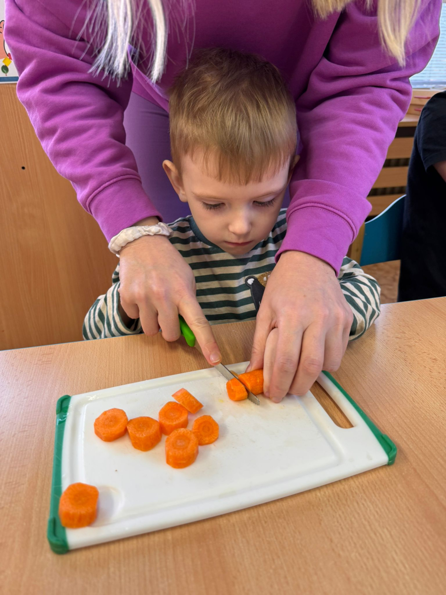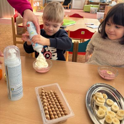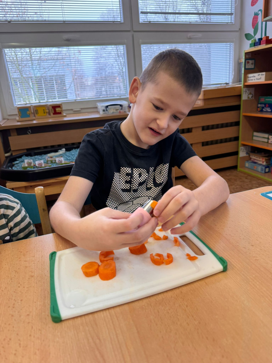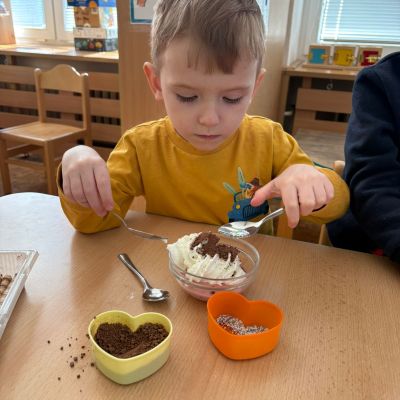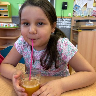 Každý den jsme si vyrobili něco dobrého. Vykrajovali jsme zeleninu pomocí vykrajovátek, sami jsme si udělali pomazánku.Vytvořili jsme si obličej pomocí ovoce a zeleniny. namíchali jsme si pruhovanou limonádu z ovocných sirupů a džusu. Upekli jsme si jablečné taštičky a štrůdl. Nejvíce nám chutnala zmrzlina, kterou jsme si vyrobili z jahod a pak jsme si vyrobili zmrzlinový pohár se šlehačkou, ovocem a posypem.