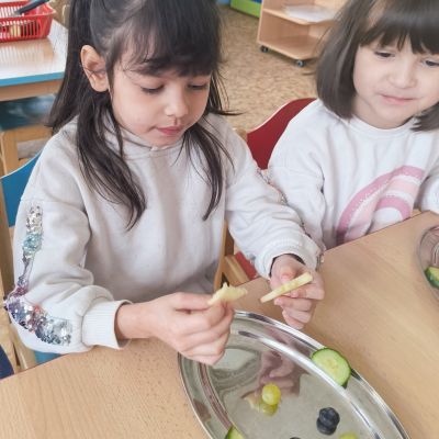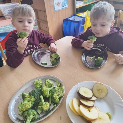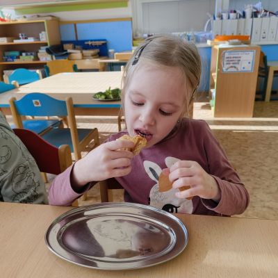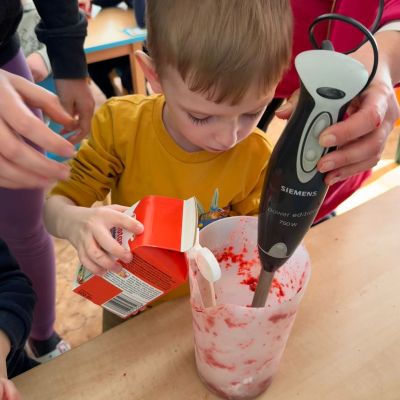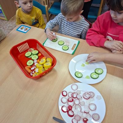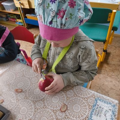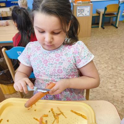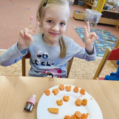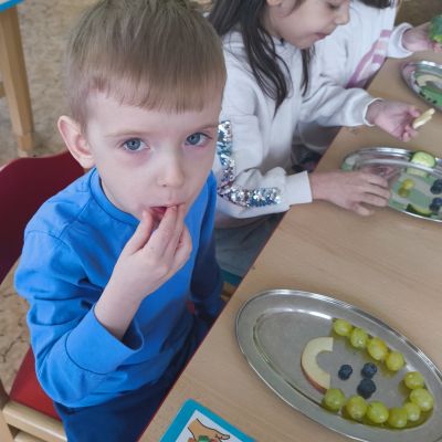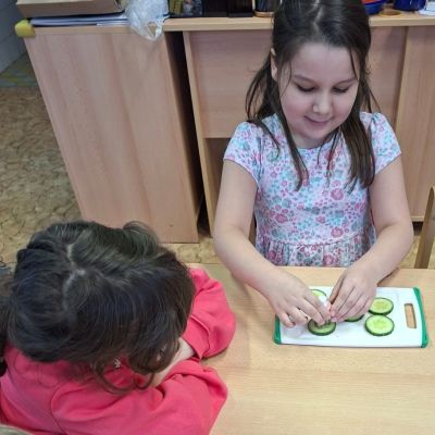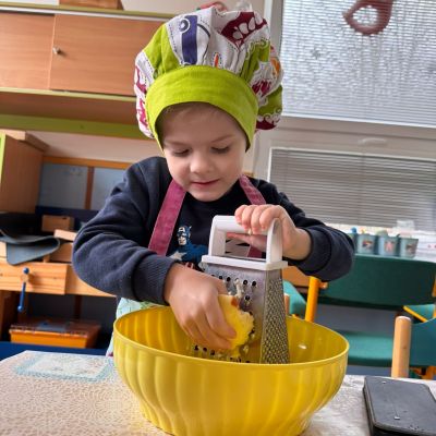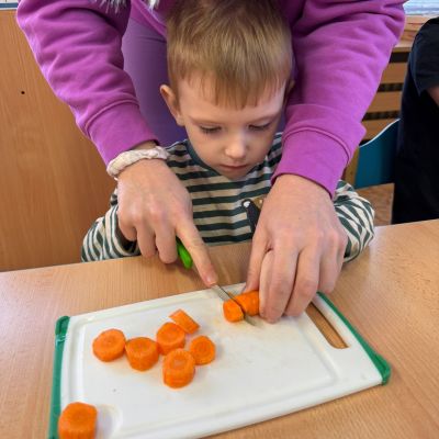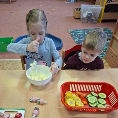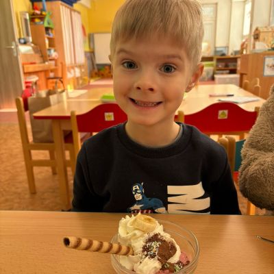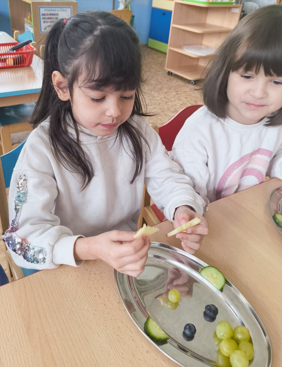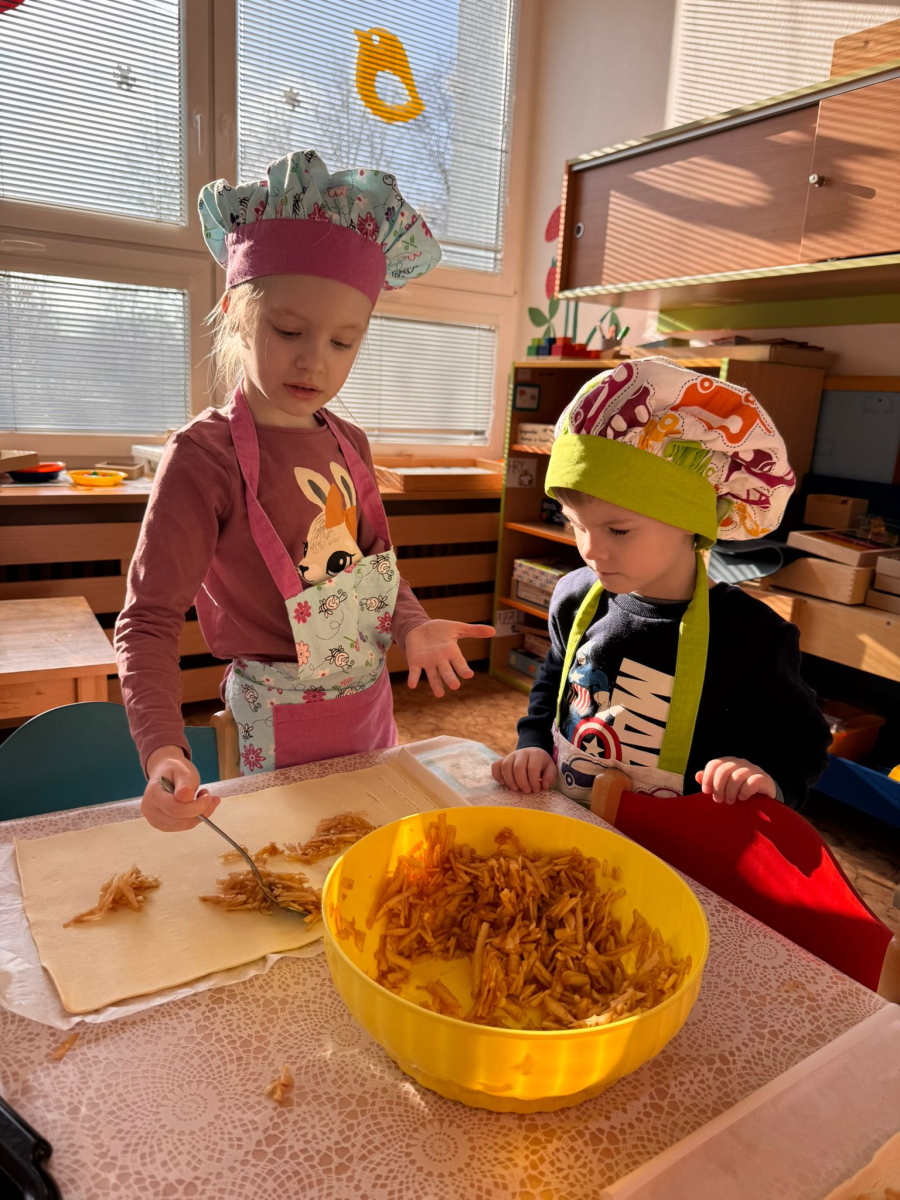 Každý den jsme si vyrobili něco dobrého. Vykrajovali jsme zeleninu pomocí vykrajovátek, sami jsme si udělali pomazánku.Vytvořili jsme si obličej pomocí ovoce a zeleniny. namíchali jsme si pruhovanou limonádu z ovocných sirupů a džusu. Upekli jsme si jablečné taštičky a štrůdl. Nejvíce nám chutnala zmrzlina, kterou jsme si vyrobili z jahod a pak jsme si vyrobili zmrzlinový pohár se šlehačkou, ovocem a posypem.