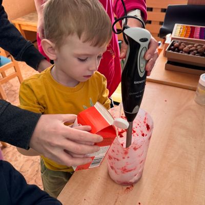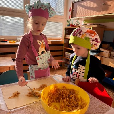 Protože rodiče byli velmi hodní a přinesli opravdu hodně surovin, tak jsme mohli vyrábět a ochutnávat hodně dobrot.