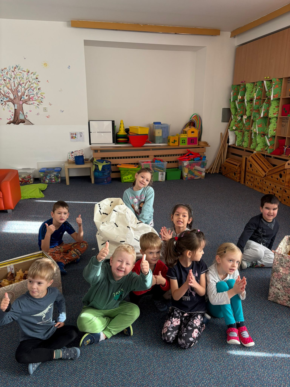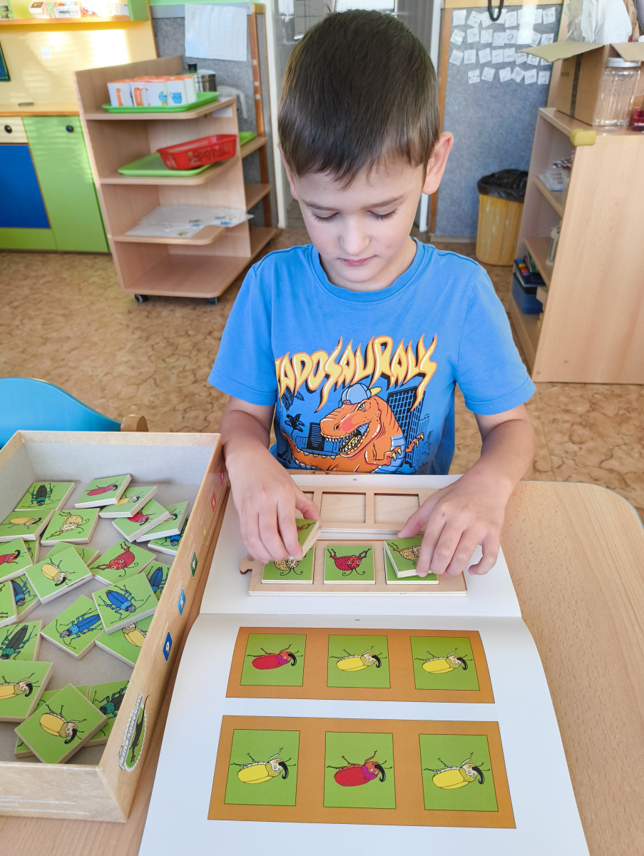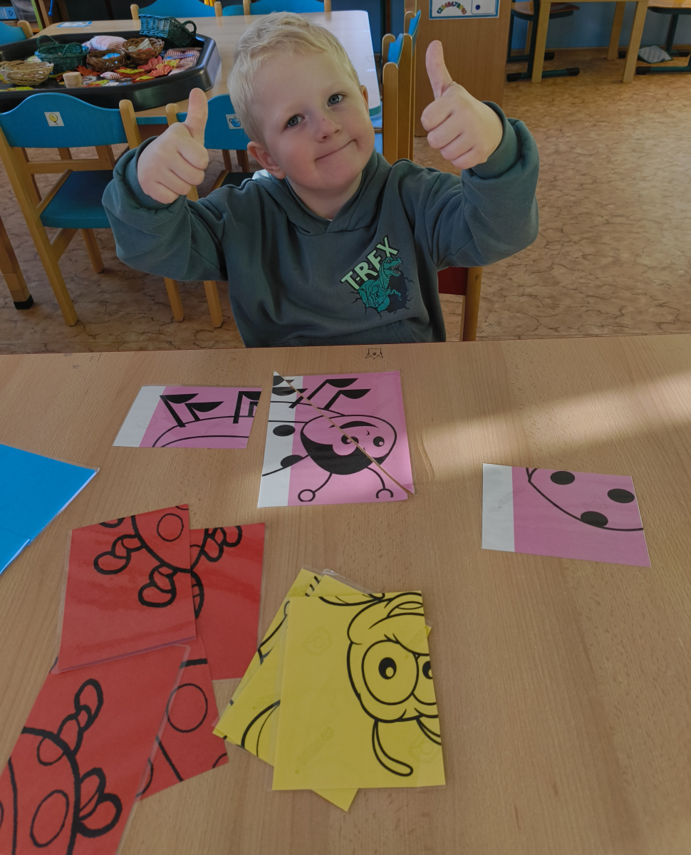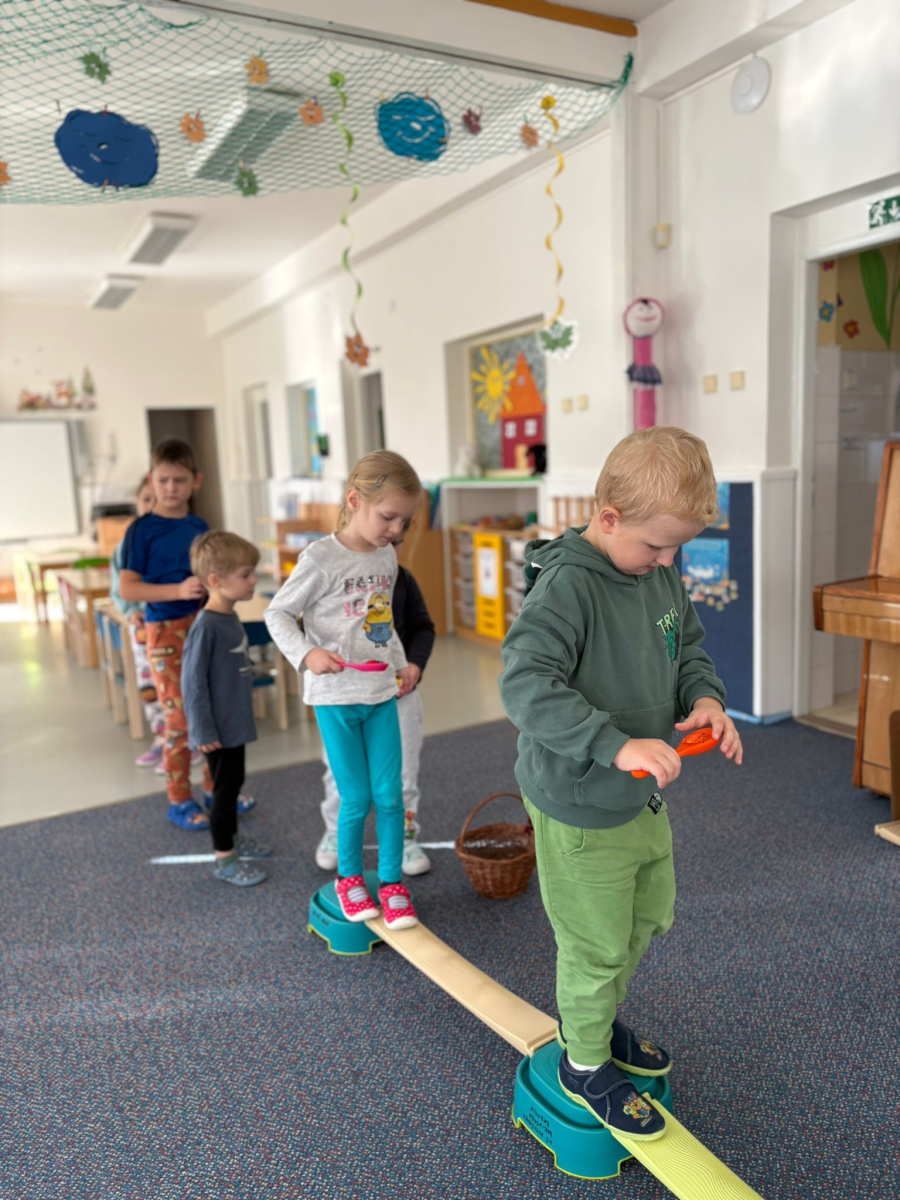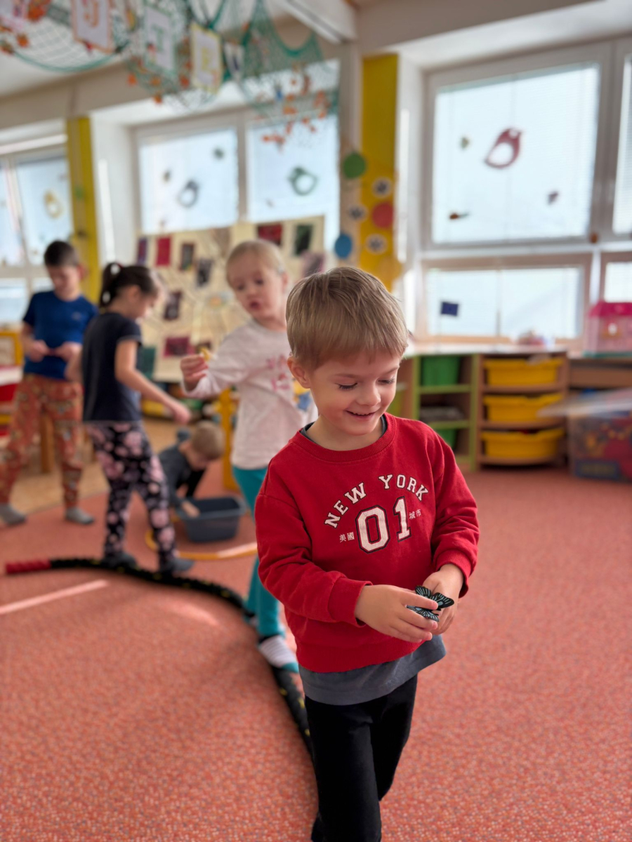 Povídlai jsme si o broučcích, proč jdou na podzim spát. Cvičili jsme s lucerničkami, hráli jsme si na boučky. Přenášeli jsme je do postýlek přes různé překážky. Cvičili jsme dětskou jógu. Šili jsme peřinku pro broučky, stříhali jsme látku.Vyrobili jsme lucerničky na broučkiádu. Kreslili jsme broučka podle předlohy. Foukali jsme do listí, hledali jsme broučky, třídili jsme je podle velikosti, barev, tvarů. Doplńovali jsme logickou řadu, hledali jsme odlišného broučka v řadě.Hledali jsme broučky v pískovničce. Učili jsme se písničku o maravenečkovi. Programovali jsme robotikcou včelu.Slavili jsme narozeniny kamaráda Vojtíška.