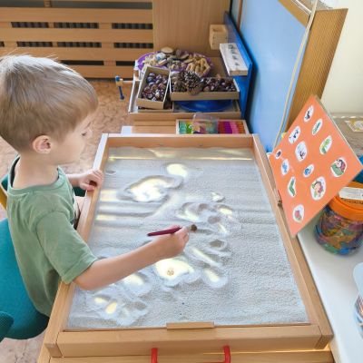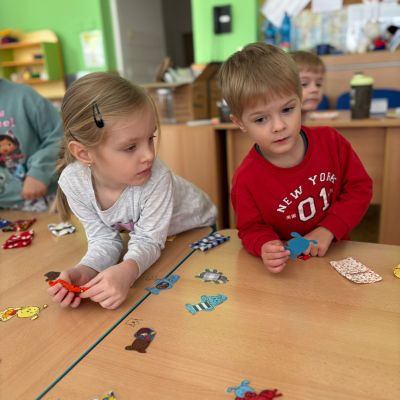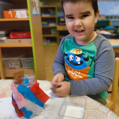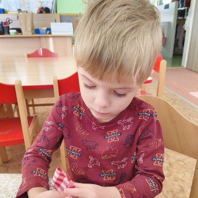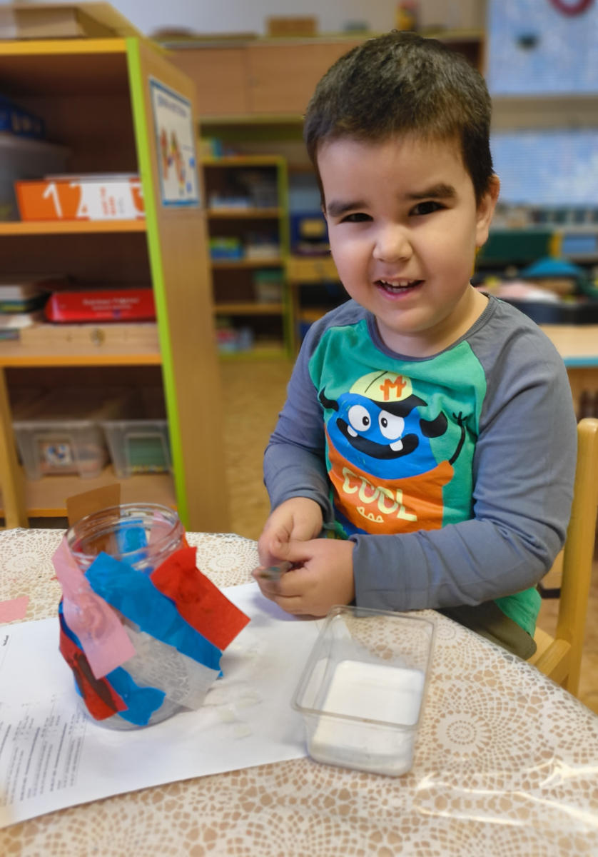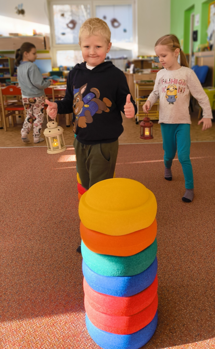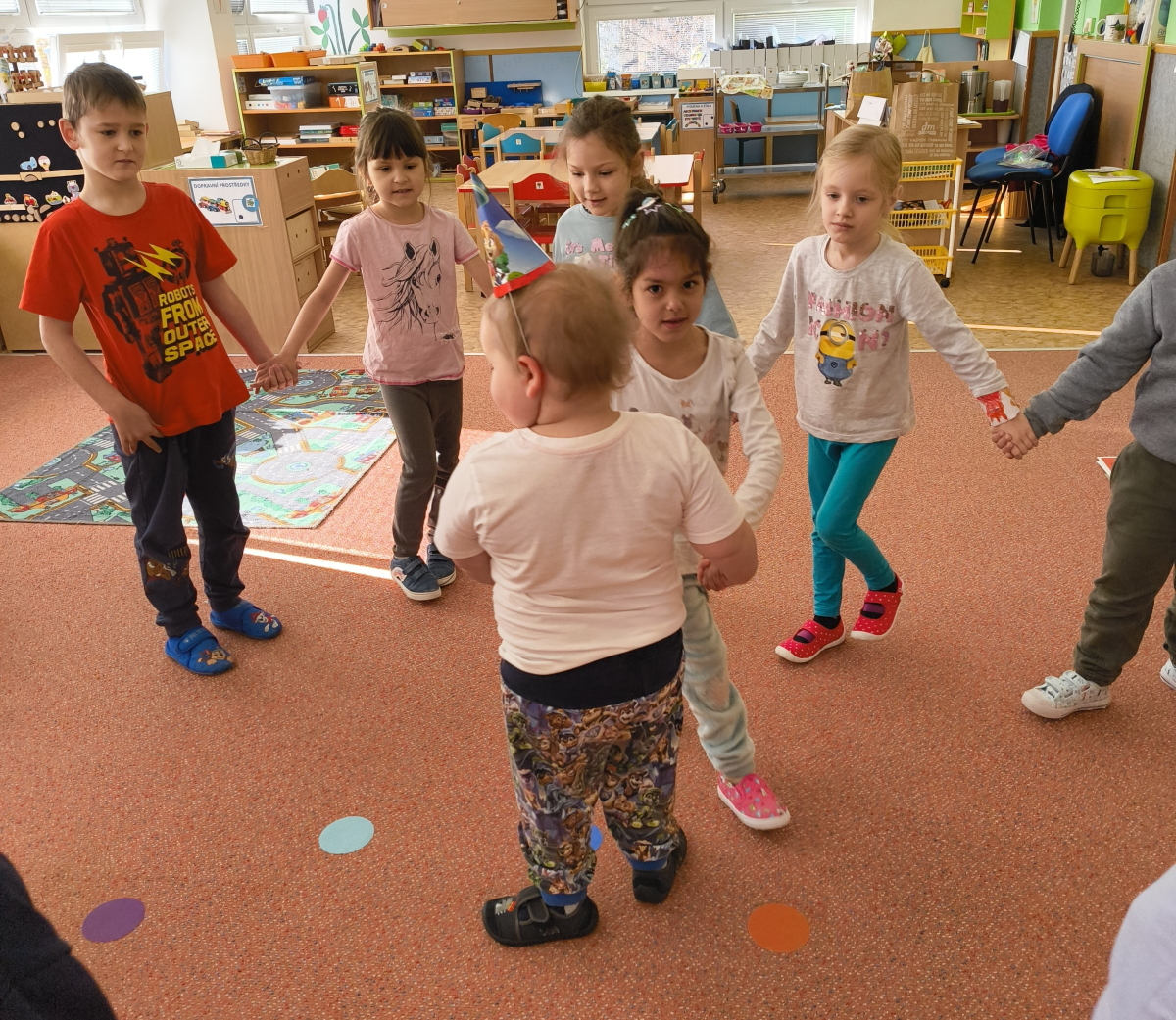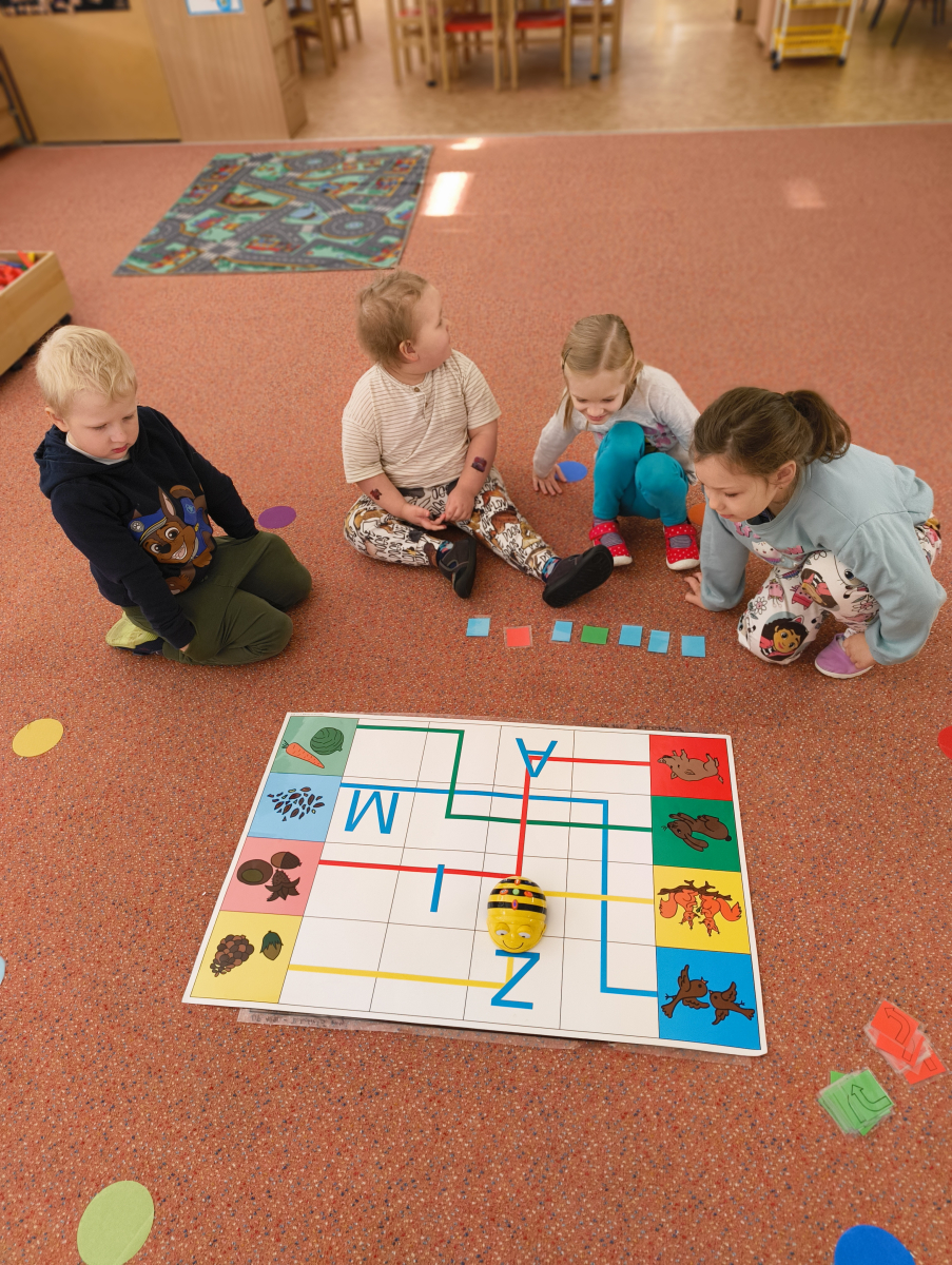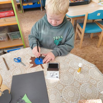 Povídlai jsme si o broučcích, proč jdou na podzim spát. Cvičili jsme s lucerničkami, hráli jsme si na boučky. Přenášeli jsme je do postýlek přes různé překážky. Cvičili jsme dětskou jógu. Šili jsme peřinku pro broučky, stříhali jsme látku.Vyrobili jsme lucerničky na broučkiádu. Kreslili jsme broučka podle předlohy. Foukali jsme do listí, hledali jsme broučky, třídili jsme je podle velikosti, barev, tvarů. Doplńovali jsme logickou řadu, hledali jsme odlišného broučka v řadě.Hledali jsme broučky v pískovničce. Učili jsme se písničku o maravenečkovi. Programovali jsme robotikcou včelu.Slavili jsme narozeniny kamaráda Vojtíška.
