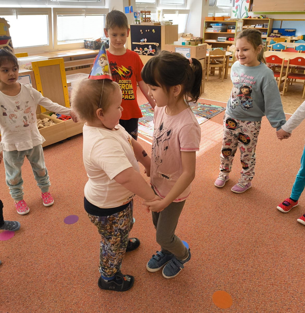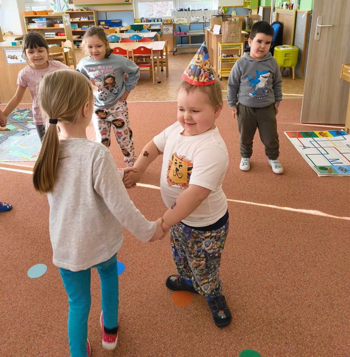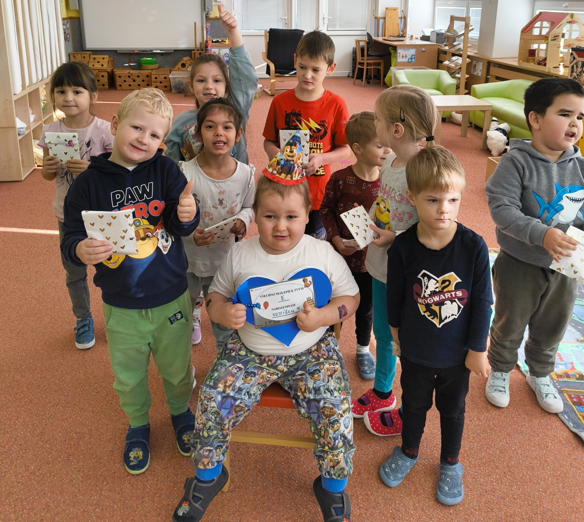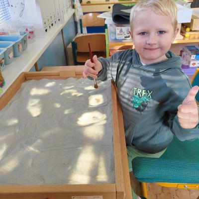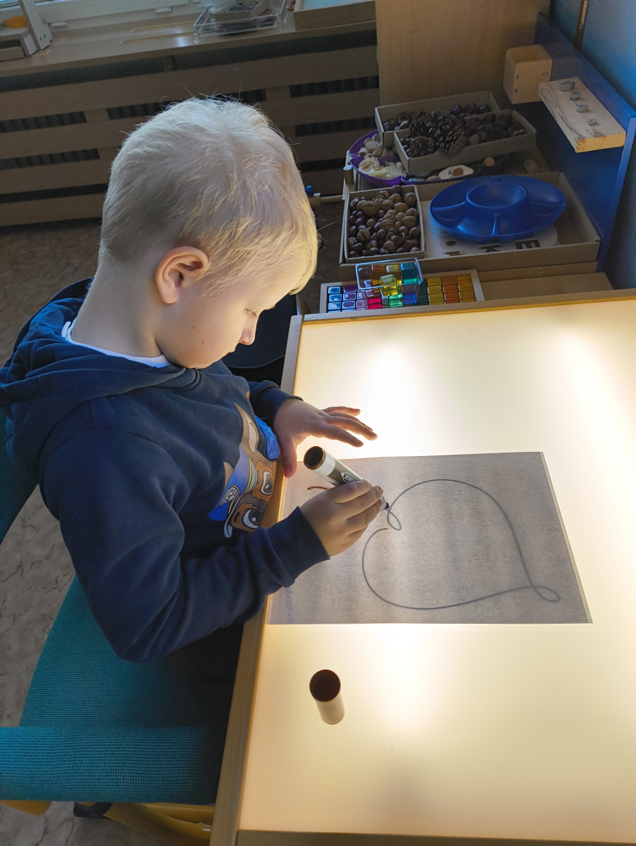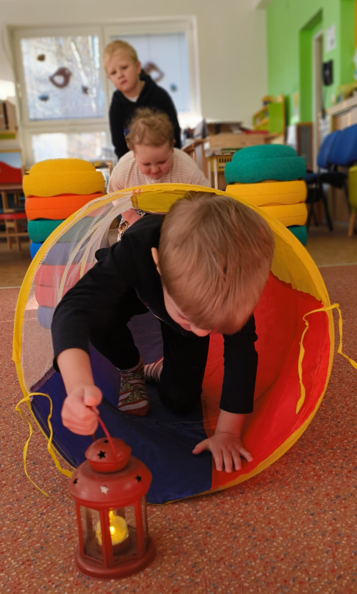 Povídlai jsme si o broučcích, proč jdou na podzim spát. Cvičili jsme s lucerničkami, hráli jsme si na boučky. Přenášeli jsme je do postýlek přes různé překážky. Cvičili jsme dětskou jógu. Šili jsme peřinku pro broučky, stříhali jsme látku.Vyrobili jsme lucerničky na broučkiádu. Kreslili jsme broučka podle předlohy. Foukali jsme do listí, hledali jsme broučky, třídili jsme je podle velikosti, barev, tvarů. Doplńovali jsme logickou řadu, hledali jsme odlišného broučka v řadě.Hledali jsme broučky v pískovničce. Učili jsme se písničku o maravenečkovi. Programovali jsme robotikcou včelu.Slavili jsme narozeniny kamaráda Vojtíška.