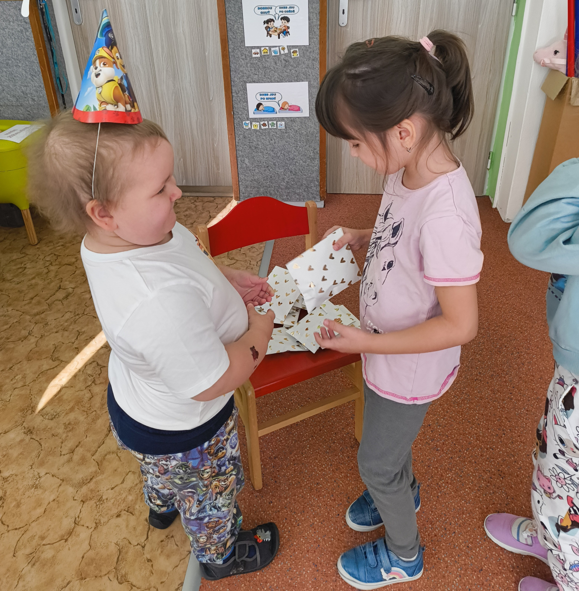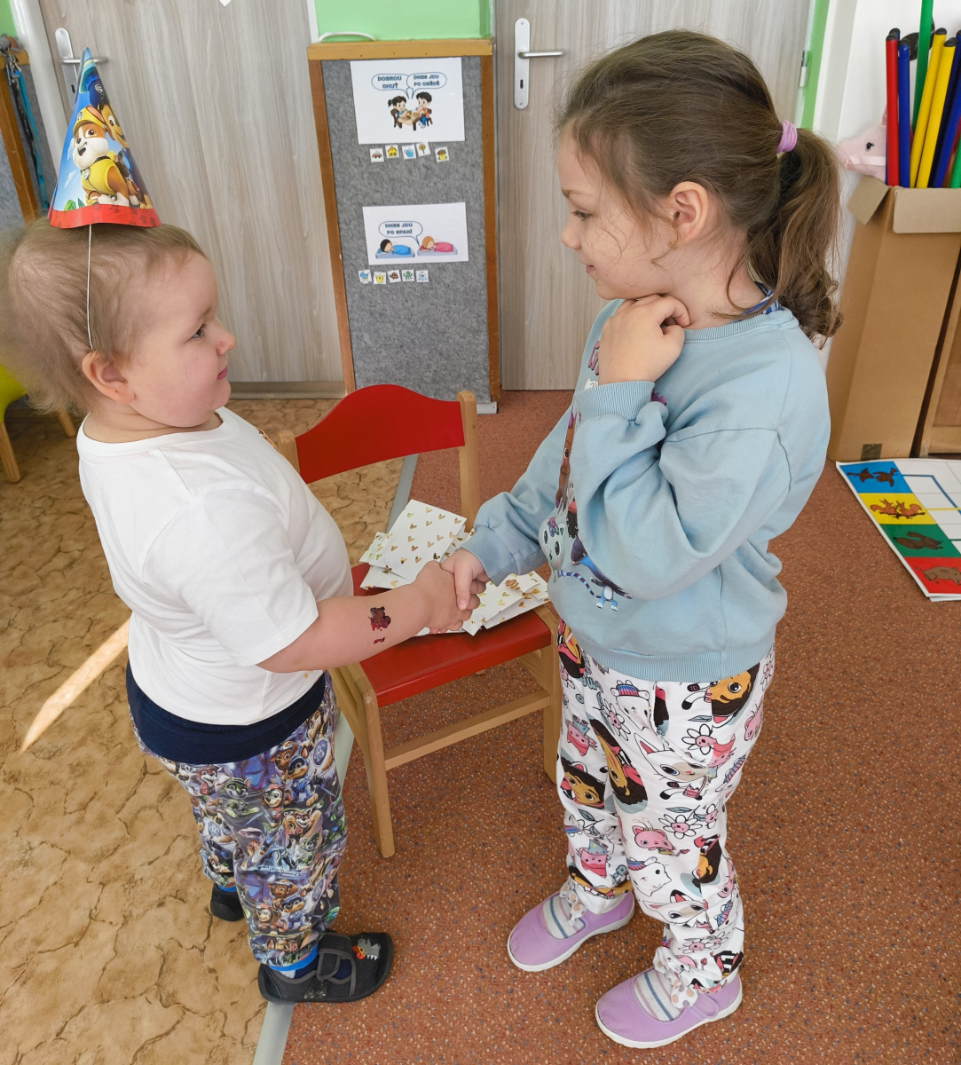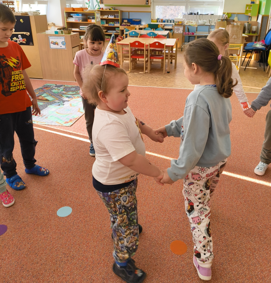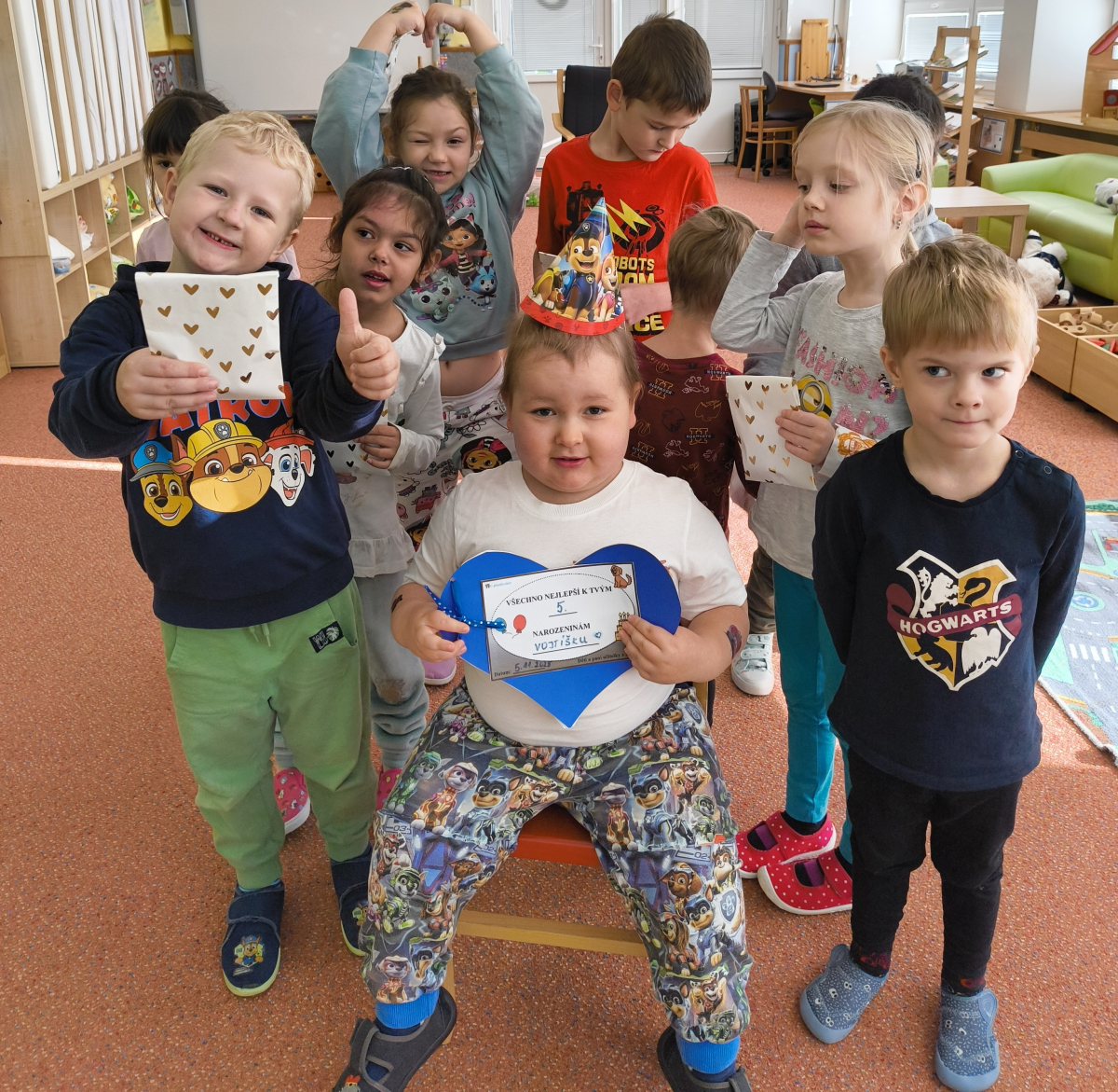 Povídlai jsme si o broučcích, proč jdou na podzim spát. Cvičili jsme s lucerničkami, hráli jsme si na boučky. Přenášeli jsme je do postýlek přes různé překážky. Cvičili jsme dětskou jógu. Šili jsme peřinku pro broučky, stříhali jsme látku.Vyrobili jsme lucerničky na broučkiádu. Kreslili jsme broučka podle předlohy. Foukali jsme do listí, hledali jsme broučky, třídili jsme je podle velikosti, barev, tvarů. Doplńovali jsme logickou řadu, hledali jsme odlišného broučka v řadě.Hledali jsme broučky v pískovničce. Učili jsme se písničku o maravenečkovi. Programovali jsme robotikcou včelu.Slavili jsme narozeniny kamaráda Vojtíška.