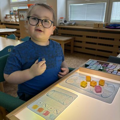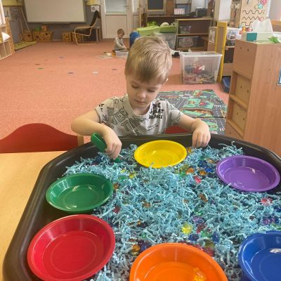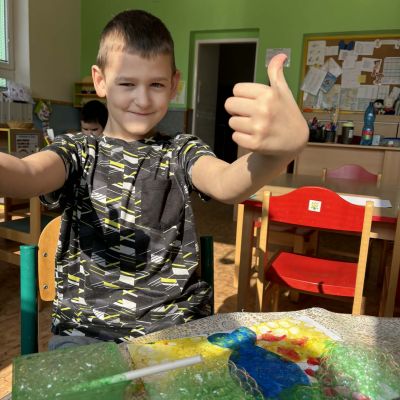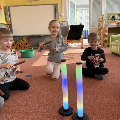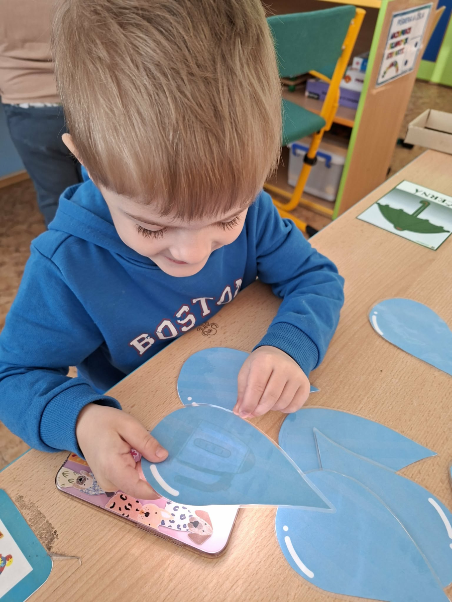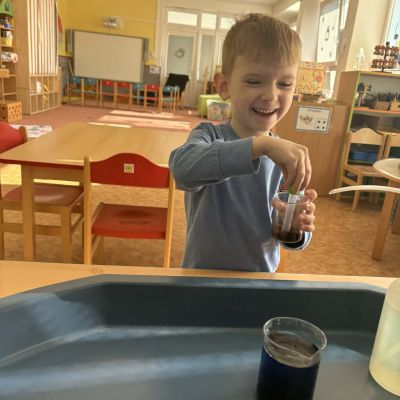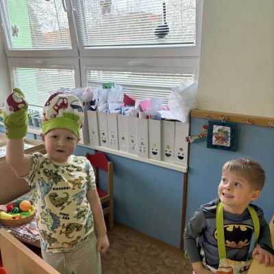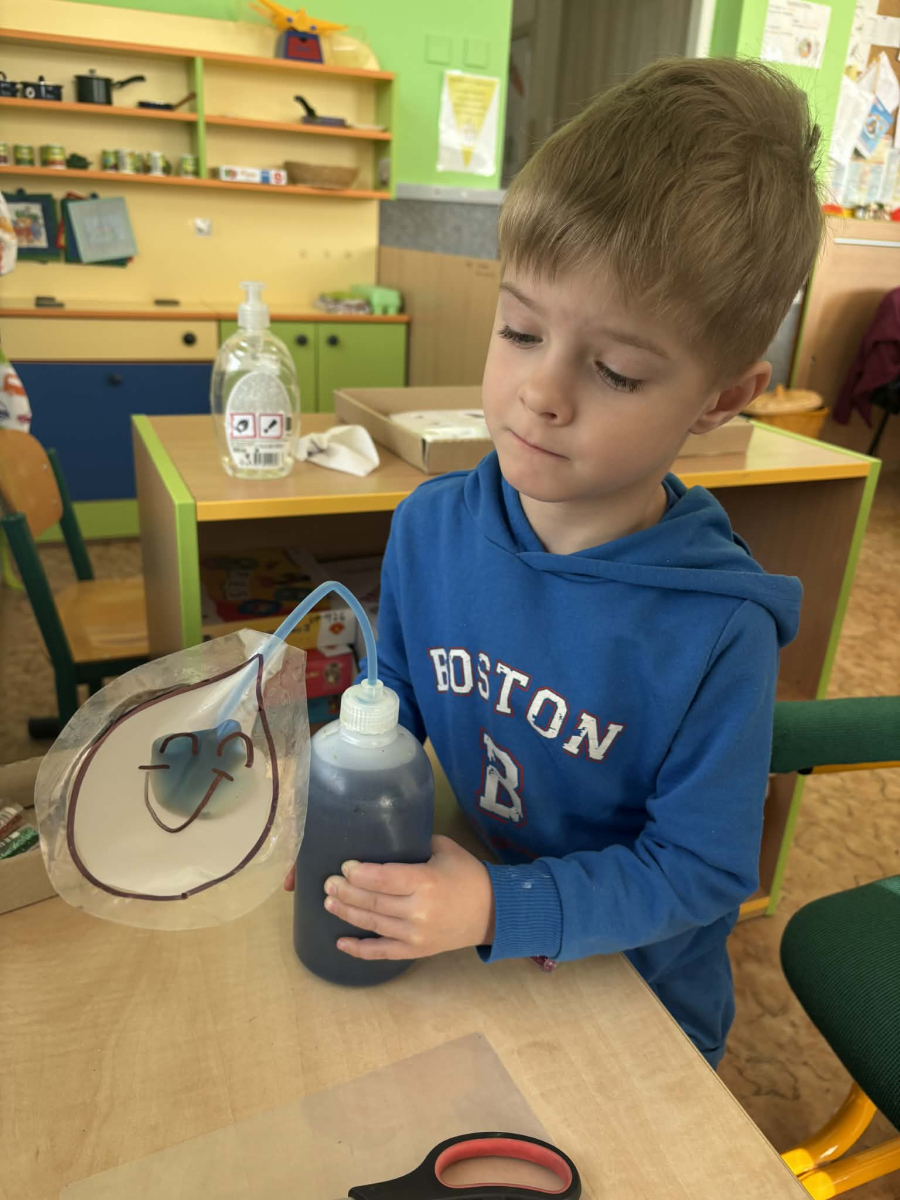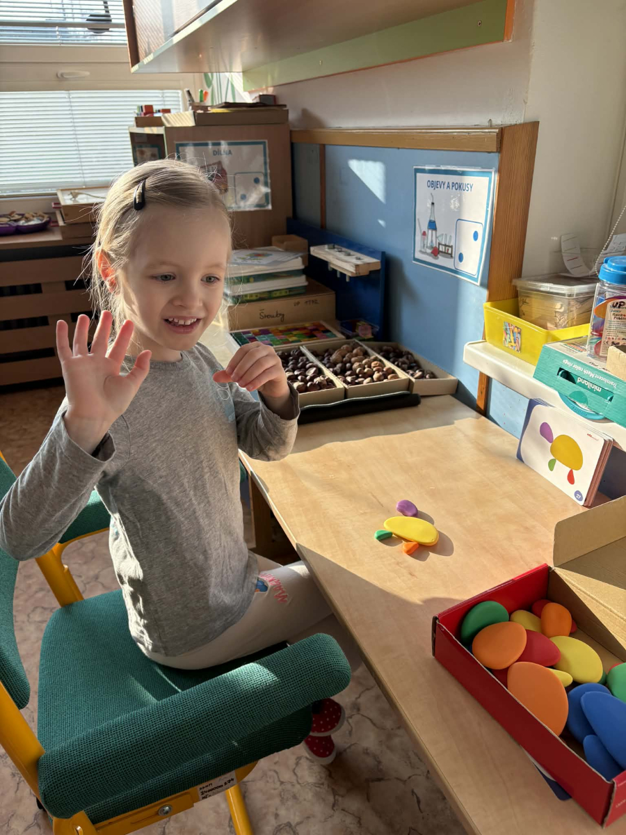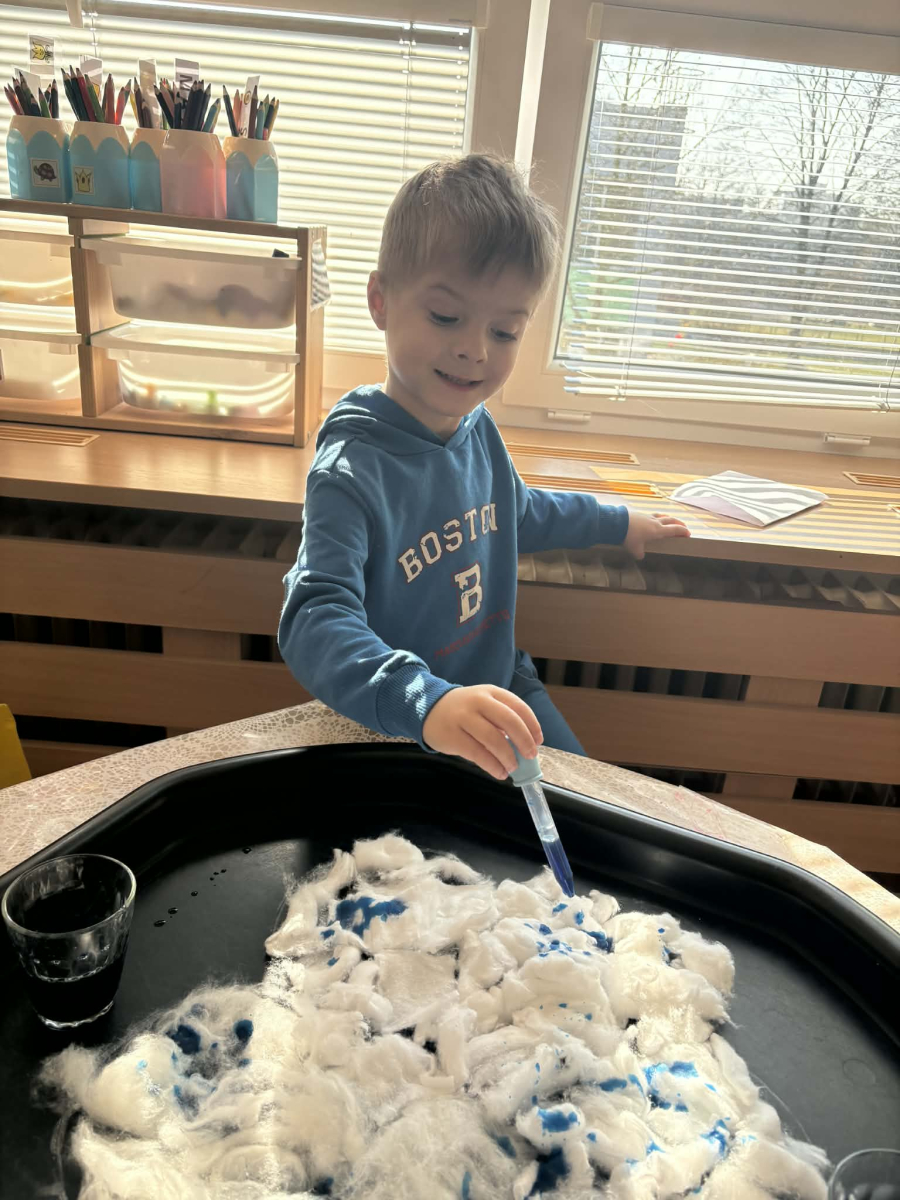 Minulý týden jsme zakončili výletem na Stezku vody v Bělském lese, na který jsme plynule navázali tématem o kapičce. Ta nás provedla týdnem plným aktivit zaměřených na koloběh vody. Společně jsme si stanovili pravidla pro šetření vodou, připomněli si, kde všude ji najdeme a k čemu všemu ji potřebujeme. Nechybělo ani zážitkové učení, vyzkoušeli jsme si nejrůznější pokusy i zábavné výtvarné techniky. Rozvíjeli jsme rytmus, motoriku i kreativitu a uspořádali soutěž o nejhezčí vodní vílu. Julinka a Saša přinesli nádherné postavičky, za které je čeká zasloužená odměna. Celý týden jsme pak zakončili Modrým dnem, kdy se naše třída proměnila v moře kapiček.