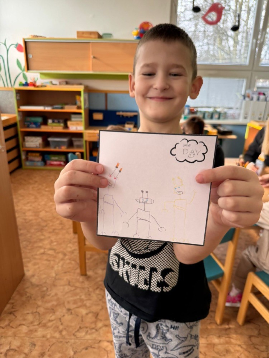 V prvním březnovém týdnu se z nás stali strůjci robotů! V pondělí jsme byli roboti my sami, v úterý jsme se seznámili s roboty, které můžeme využít i v kuchyni. Udělali jsme si ovocnou šťávu, jahodový milkshake a vyzkoušeli jsme si, že napěňovač mléka může být jako hnací pohon malého robůtka. Ostatní dny jsme si už lámali hlavičky s programováním robotických hraček a při pobytu venku jsme plnili robotické mise. U stolečku jsme procvičovali jemnou motoriku i logické myšlení, a výtvarku jsme si udělali robotí formou. Na pohyb jsme taky nezapomněli, aby nám neztuhly svaly na těle a nestal se z nás robot. Taky jsme v pátek stihli oslavit Tomáškův svátek, a dostali jsme od něj samé dobrůtky.