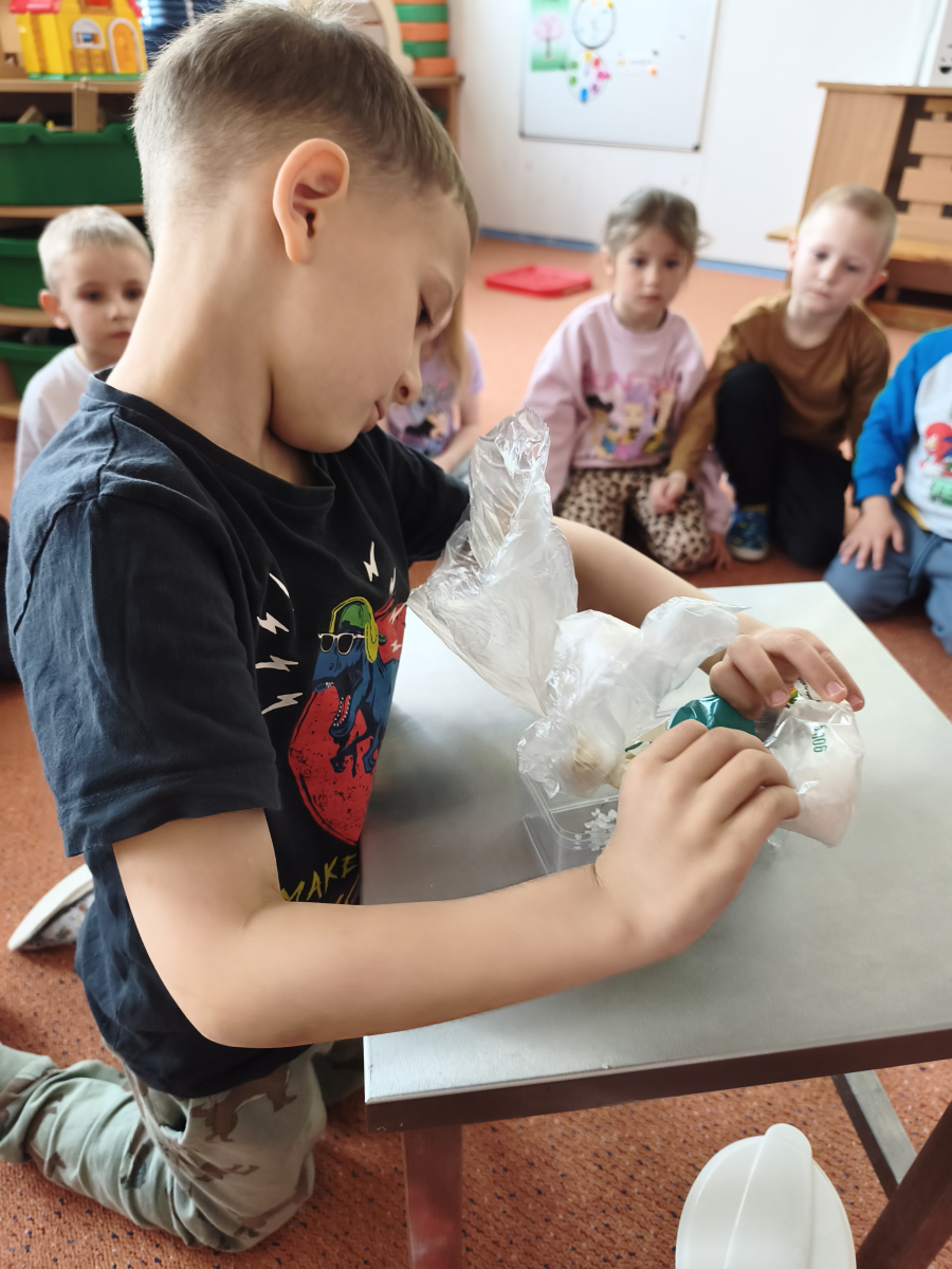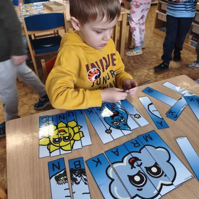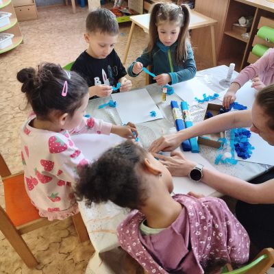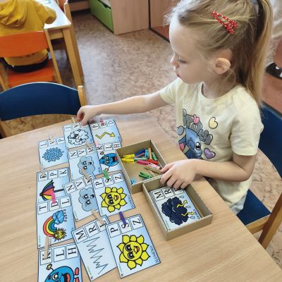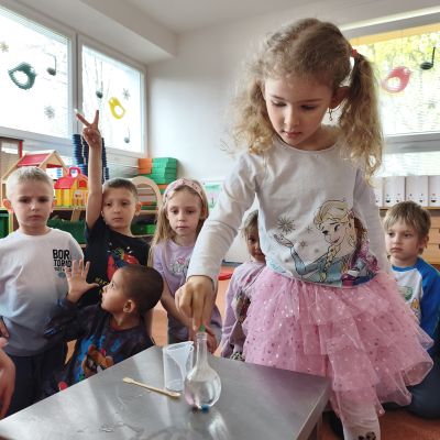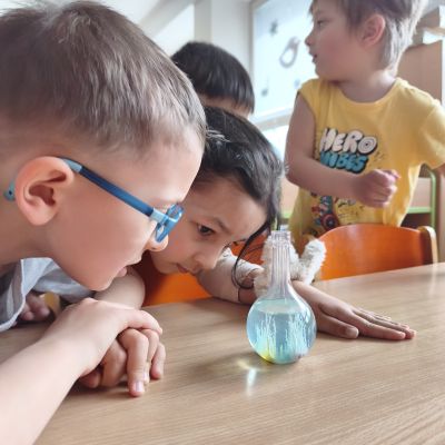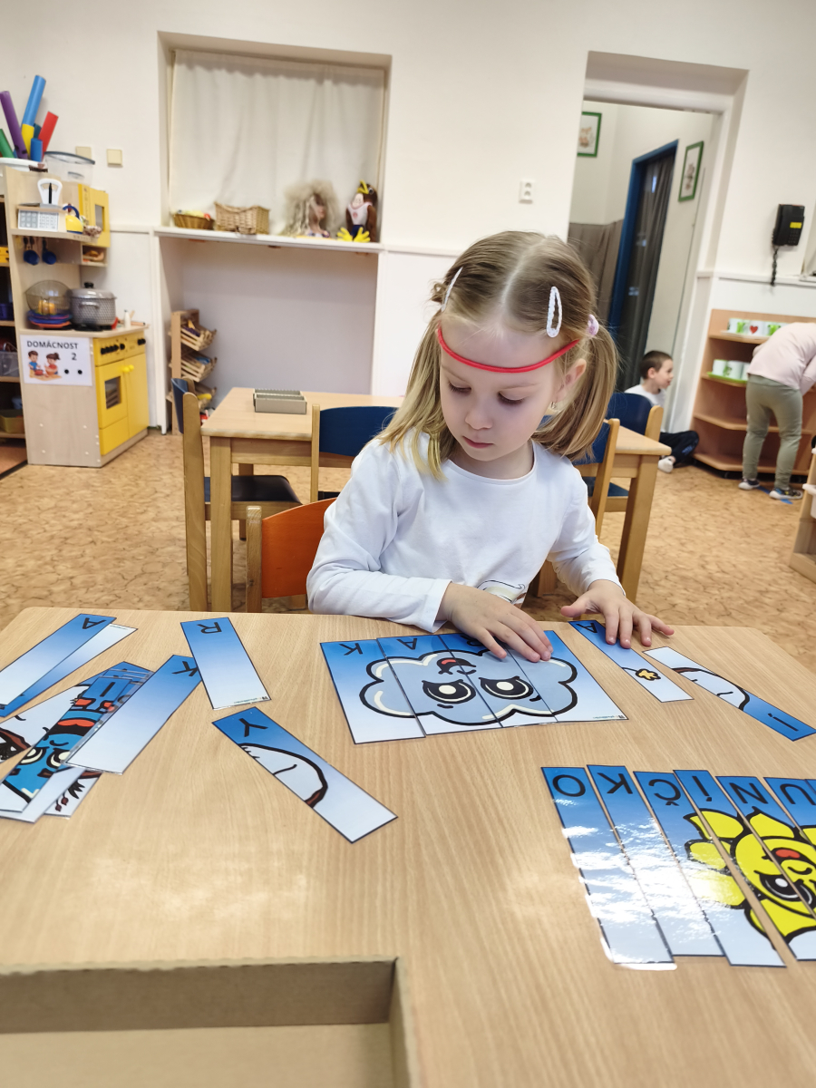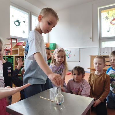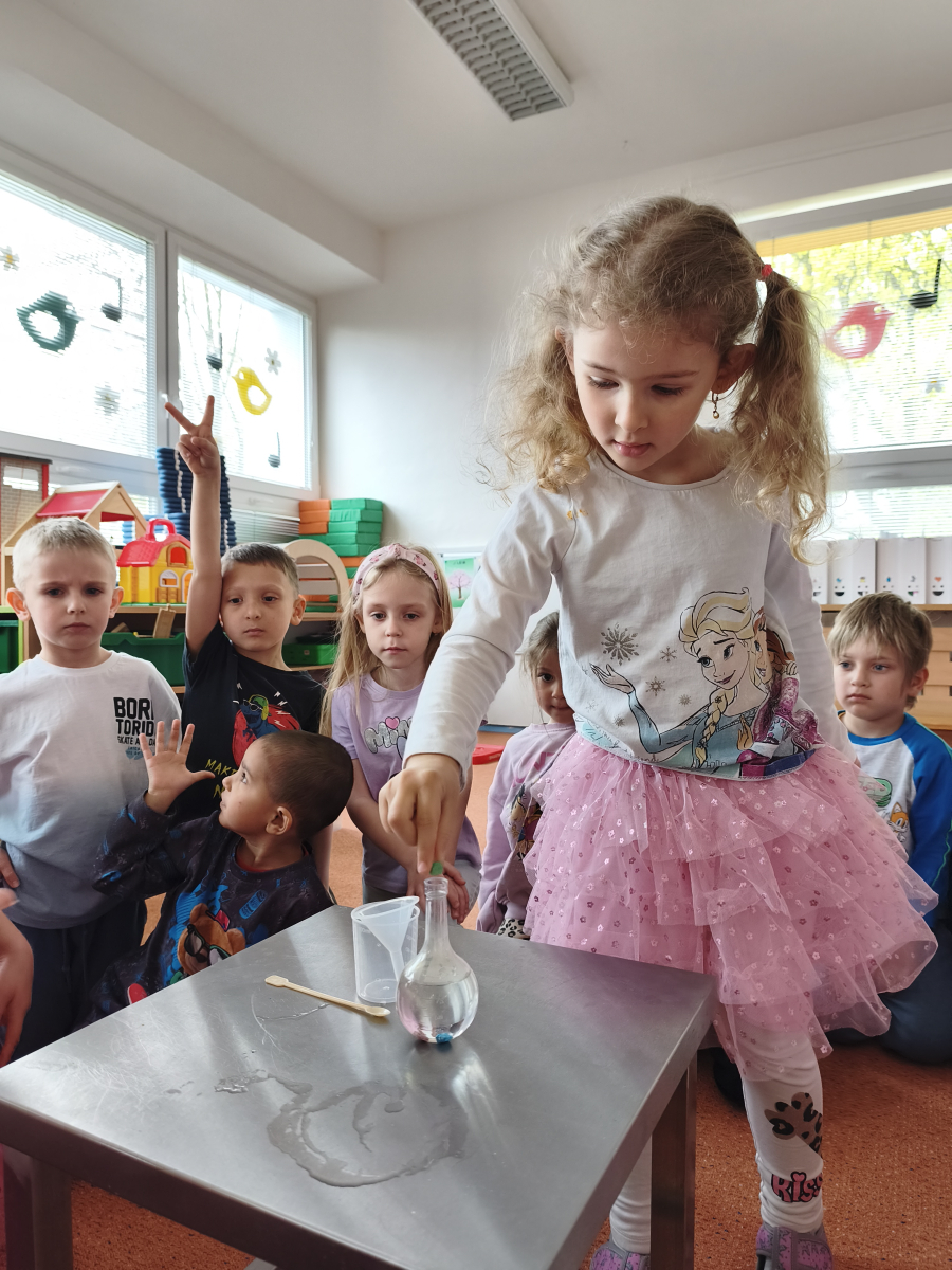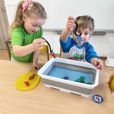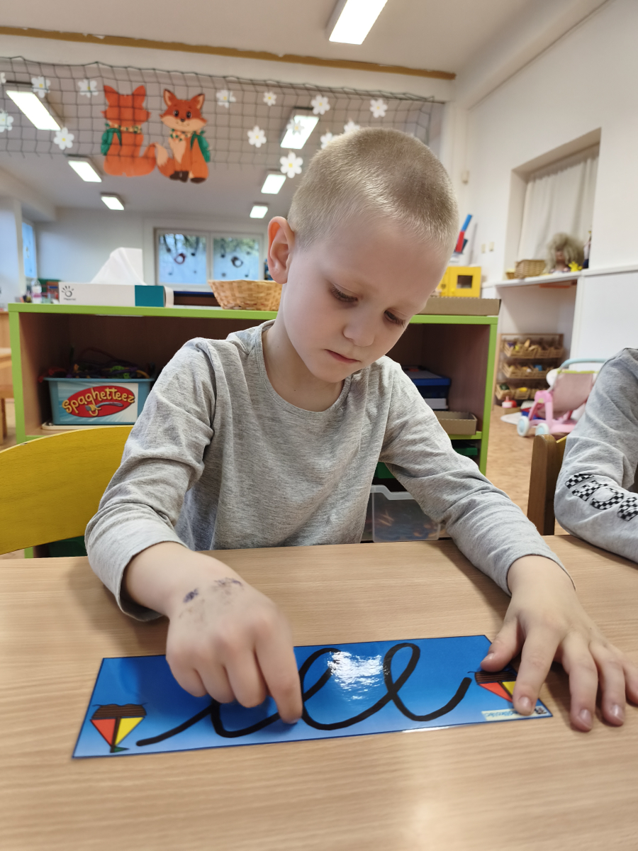 Tento týden jsme pokračovali s tématem Cesta vody. Povídali jsme si o tom, jak je voda důležitá pro naše tělo, zvířátka i rostliny, jak se dostane voda do kohoutku, jak se čistí a co všechno umí. Vyzkoušeli jsme si pokus s rozpouštěním ve vodě, odpařováním a rostoucími kameny. Vyrobili jsme si obrázek, který jsme vodou postříkali, a venku si zahráli soutěž s přeléváním vody. U stolečku jsme určovali, co patří do rybníku a co do moře, skládali jsme puzzle, procvičovali prstíky a určovali, na jaké písmenko začíná slovo kapka, déšť, moře atd. Odpoledne jsme byli čistit studánku v Bělském lese a ve třídě jsme relaxovali za zvuků vody.“